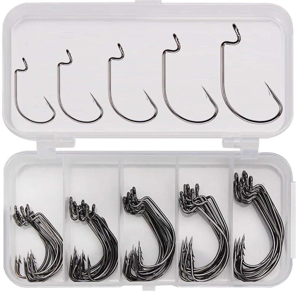 50 unids/caja anzuelos de gusano suave de mar caja de pesca gancho compensado rojo negro 2 # -3/0 # Anzuelos grandes de pesca a presión para carpa, accesorios para aparejos, anzuelo