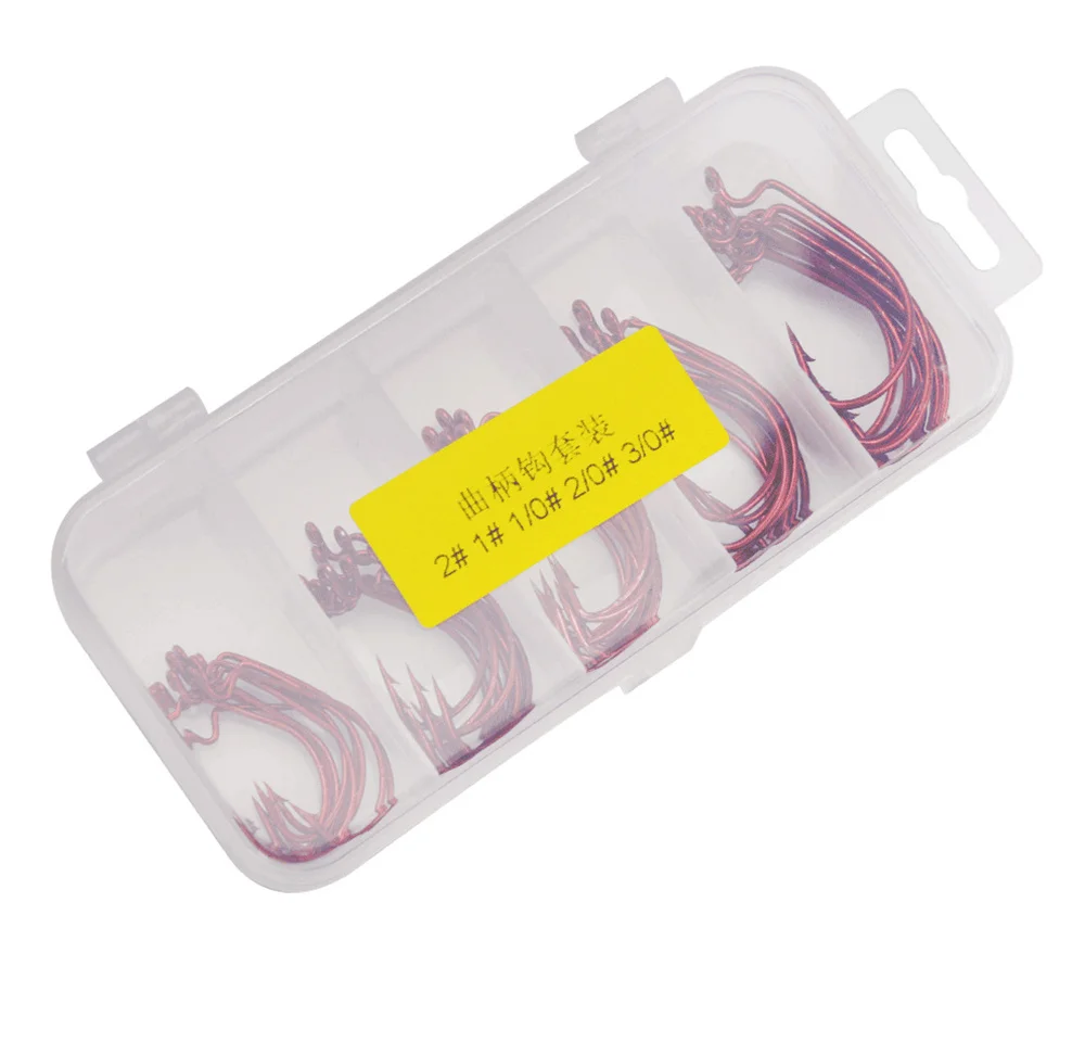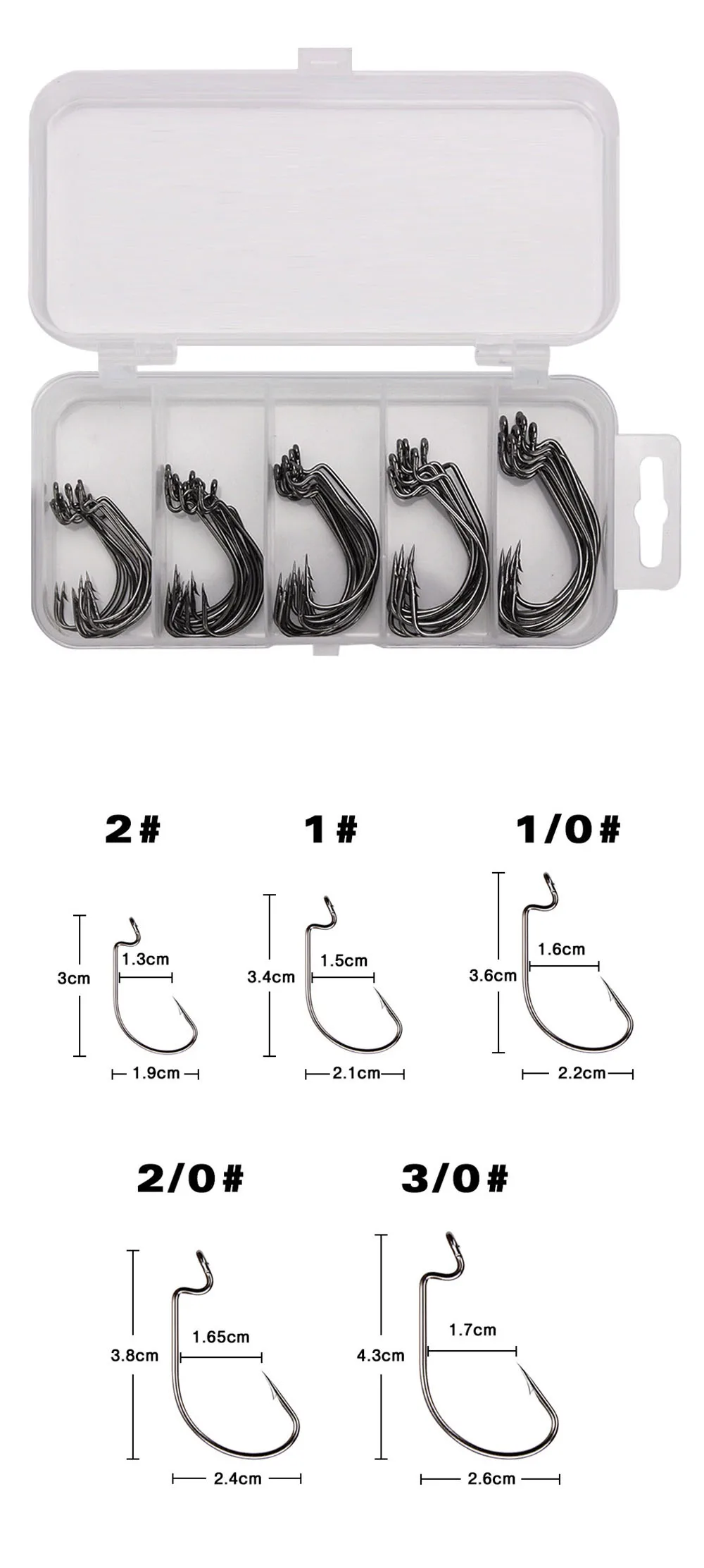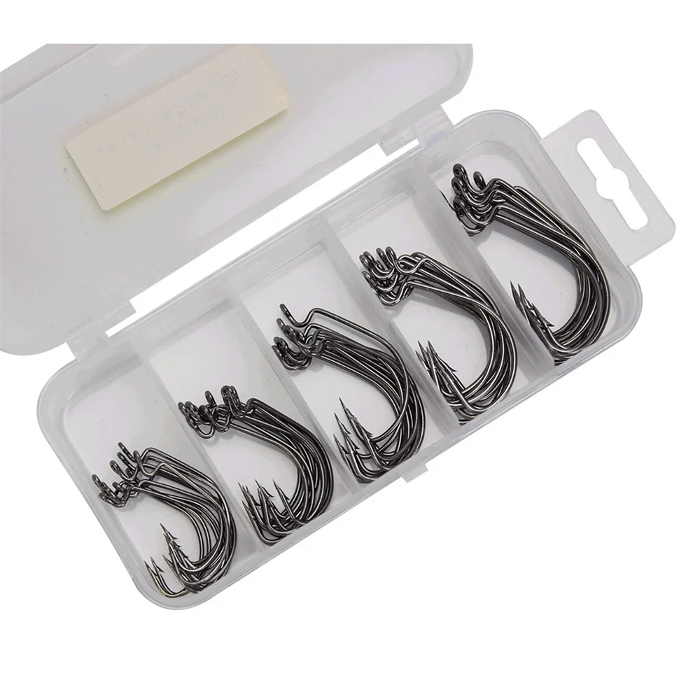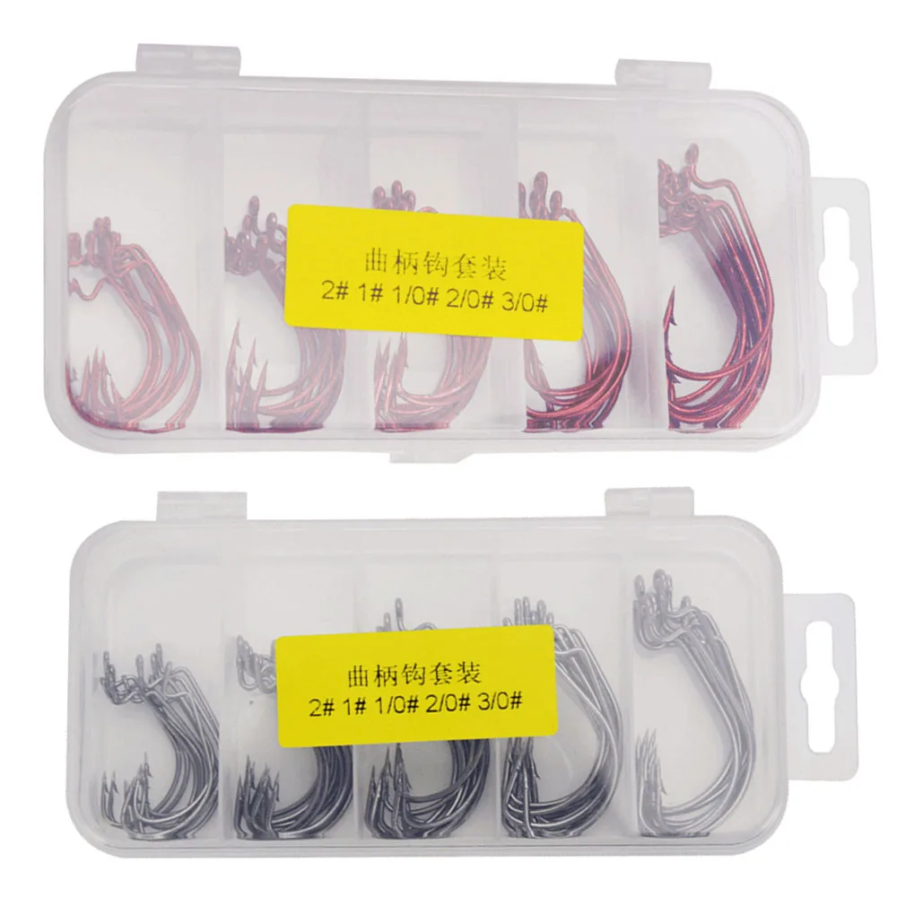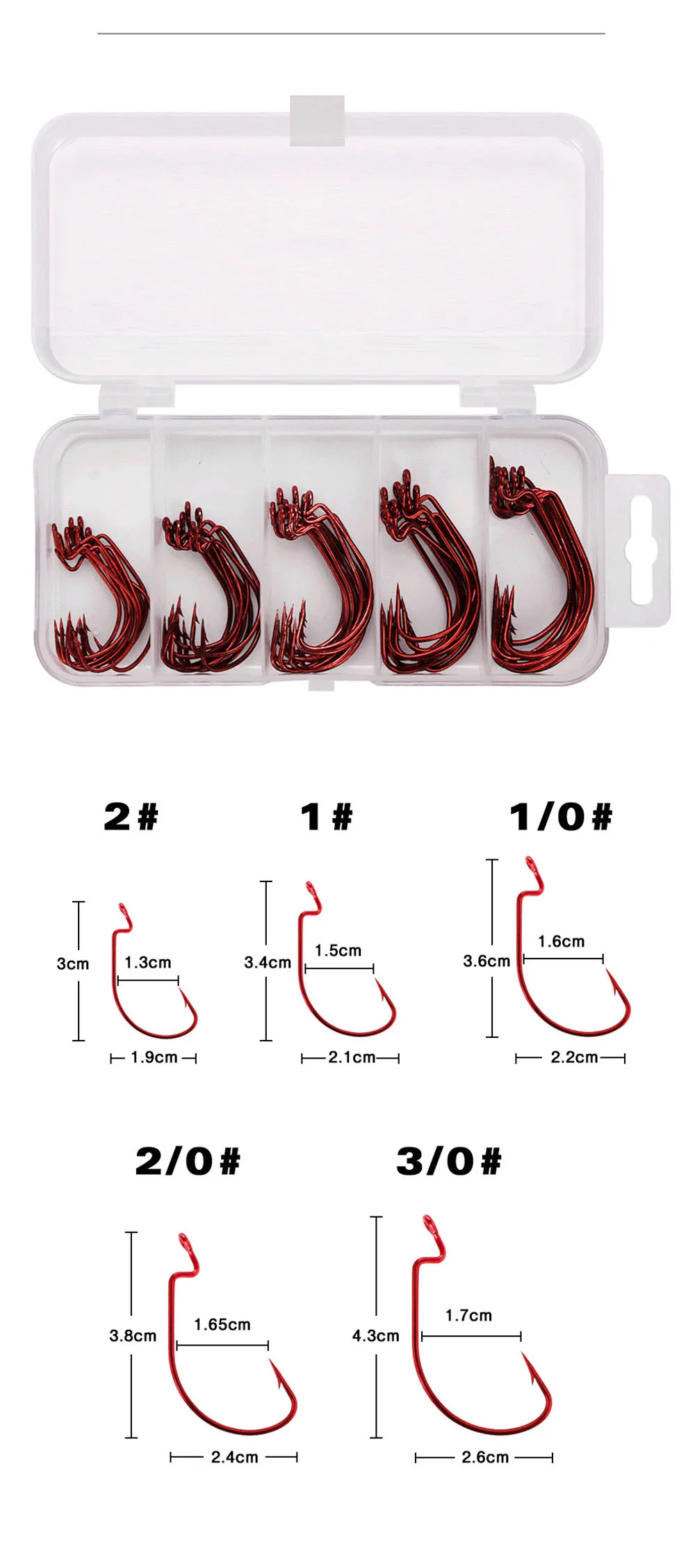50 unids/caja anzuelos de gusano suave de mar caja de pesca gancho compensado rojo negro 2 # -3/0 # Anzuelos grandes de pesca a presión para carpa, accesorios para aparejos, anzuelo
