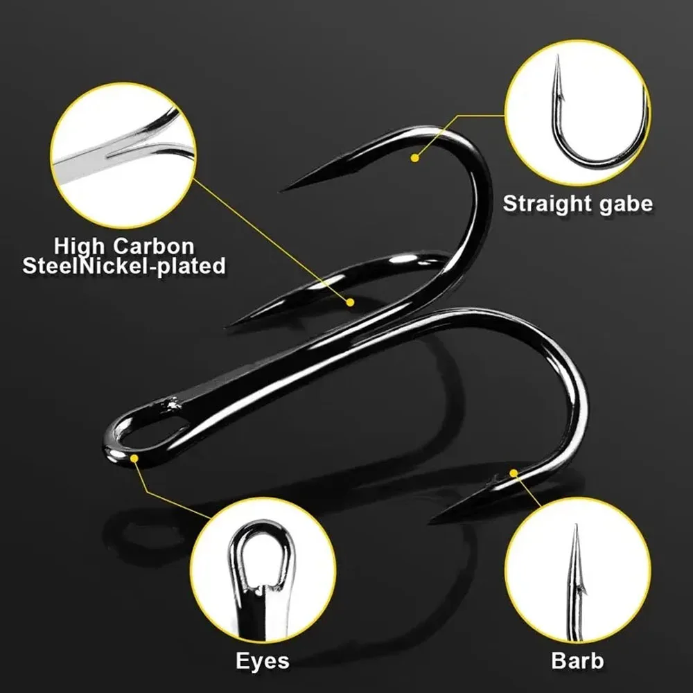 50 unids/caja mezcla de anzuelos de pesca triples, anzuelos triples para cebo duro Artificial, lubina, trucha, agua salada, anzuelos de pesca triples