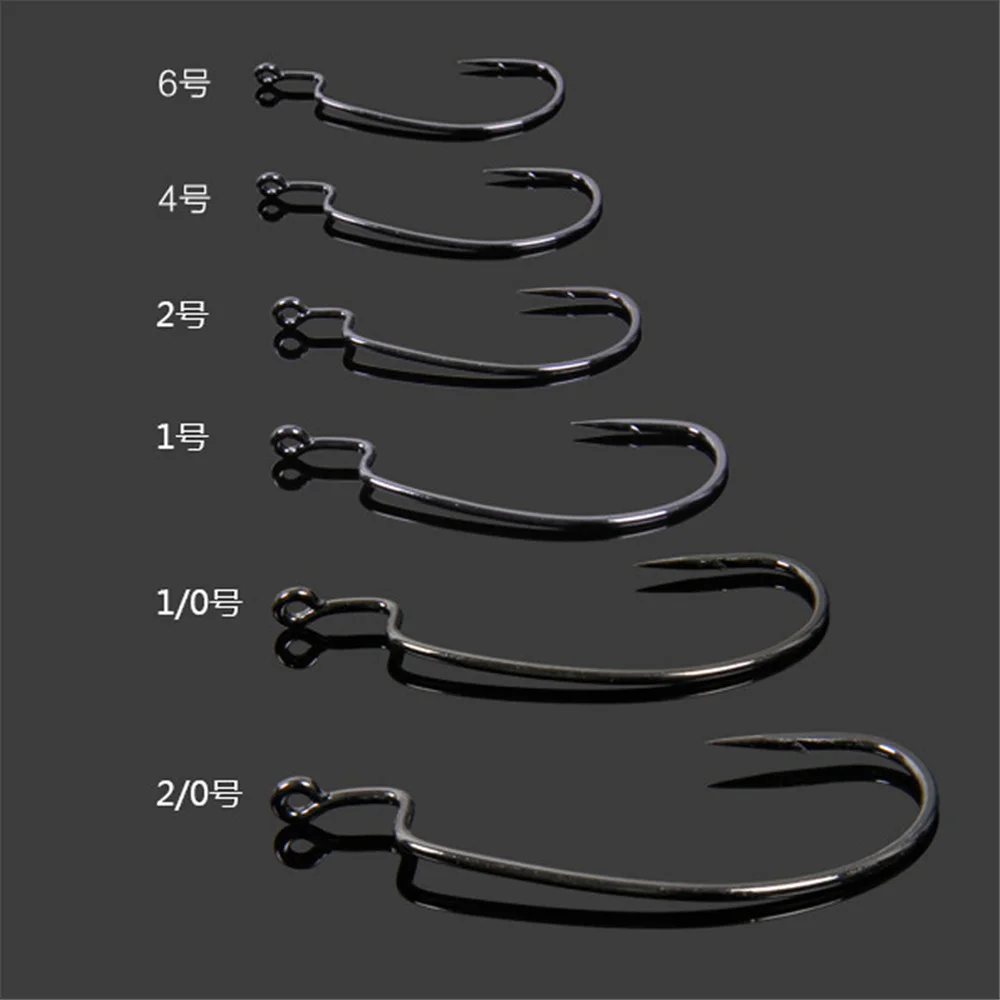 50 unids/lote anzuelos de pesca de gusanos blandos de acero alto en carbono anzuelos súper cerradados anzuelos Softjerk 6 # Aparejos de pesca de tamaño -5/0