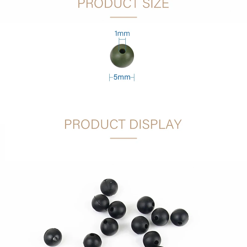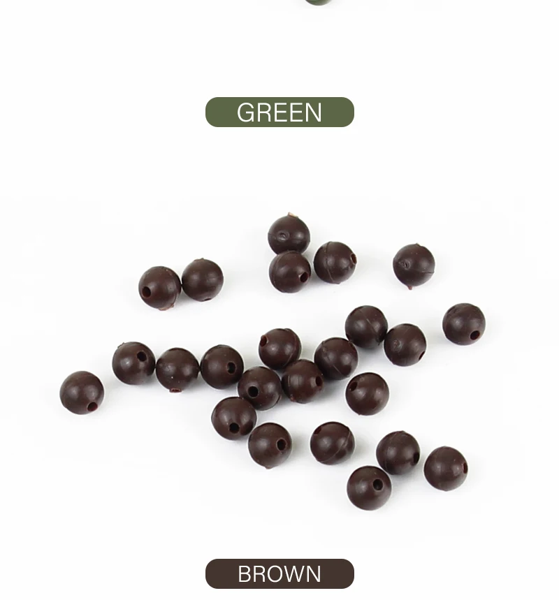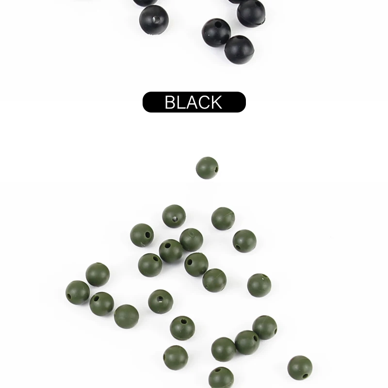 50 unids/lote de herramientas de tope de cuentas de pesca suaves de 5mm, bolas de espacio de pesca redondas luminosas negras, aparejo de goma, accesorios de señuelo, aparejos