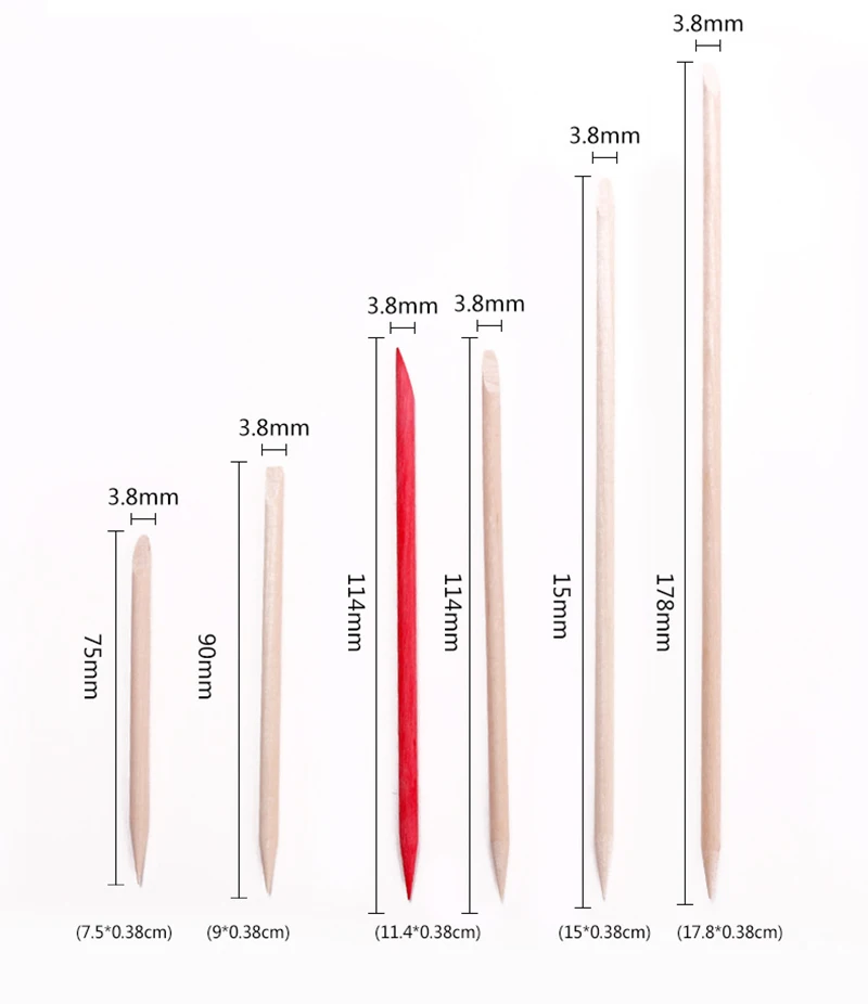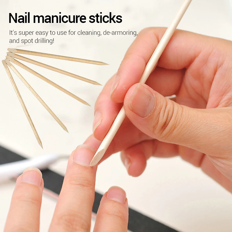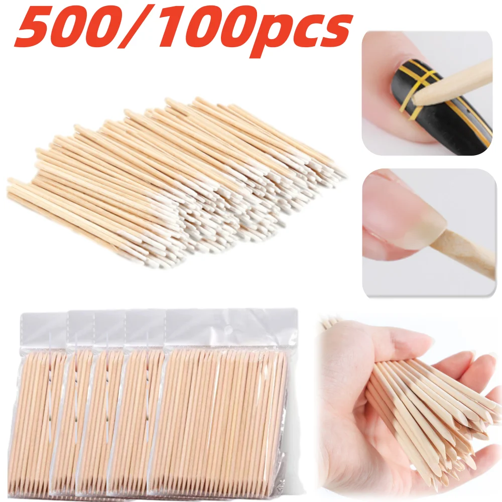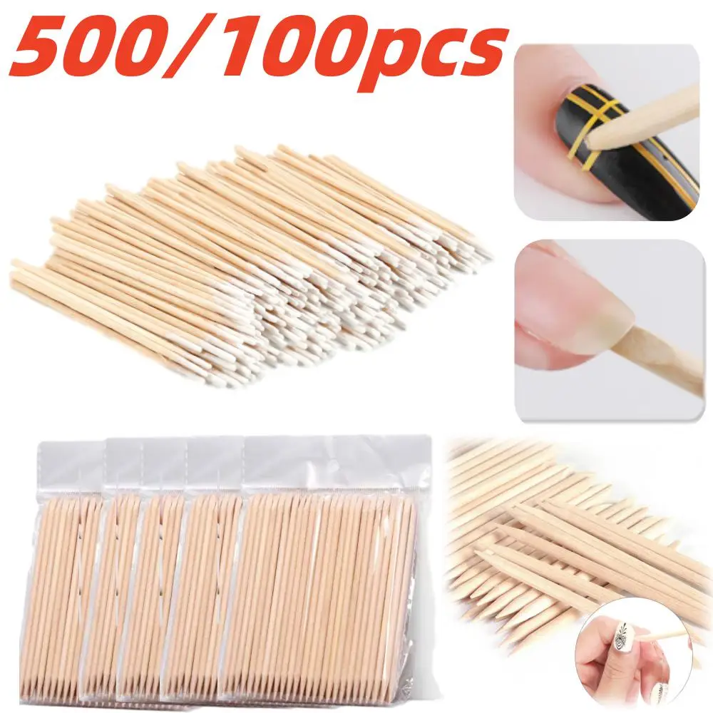 Empujador para decoración de uñas, palitos de madera naranja, removedor de cutículas, diamantes de imitación, eliminación de puntos, juego de cuidado de manicura y pedicura, 500/100 Uds.