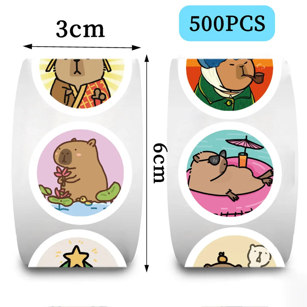 500 uds/rollo lindo capibara viñetas de animales pegatinas de grafiti DIY teléfono guitarra portátil maleta para portátil pegatina impermeable juguete para niños