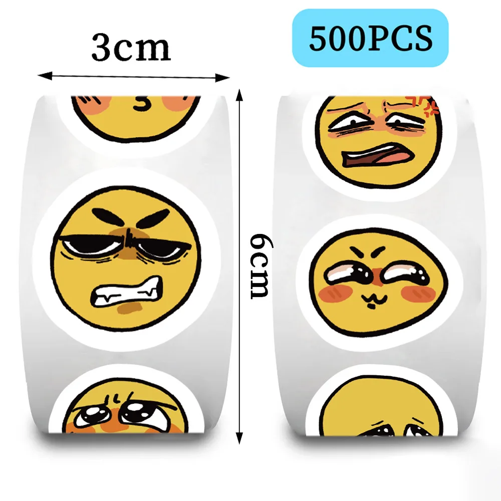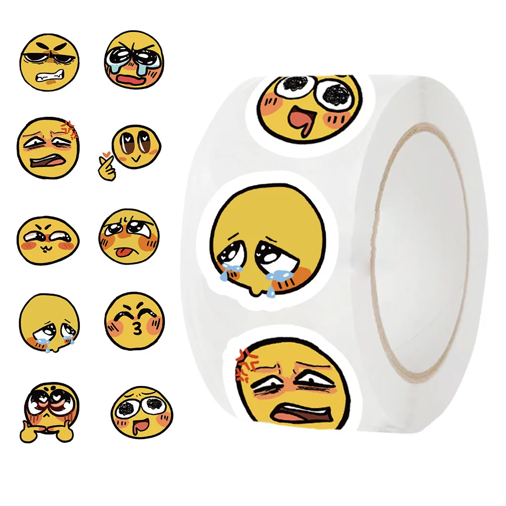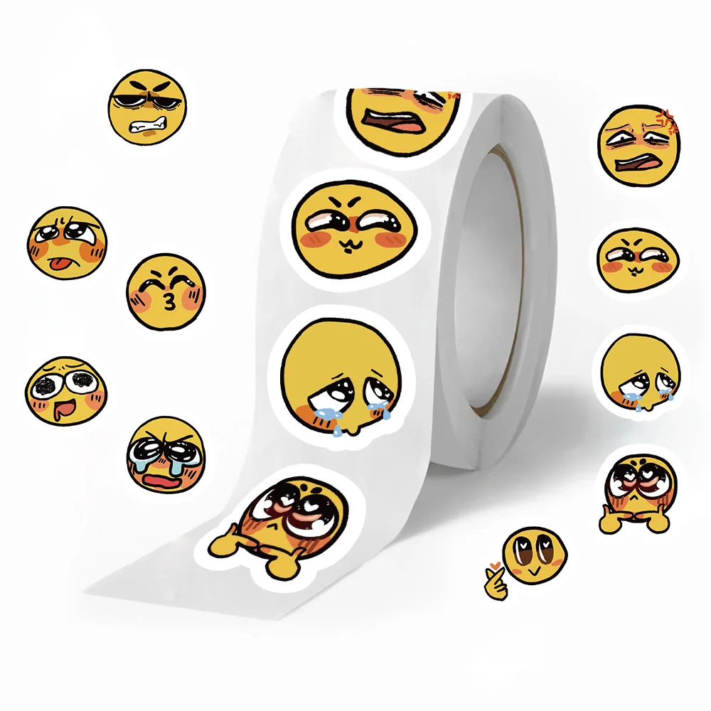 500 uds/rollo de pegatinas de grafiti de dibujos animados MEME de cara amarilla, teléfono, guitarra, portátil, maleta, botellas de agua, pegatina de regalo