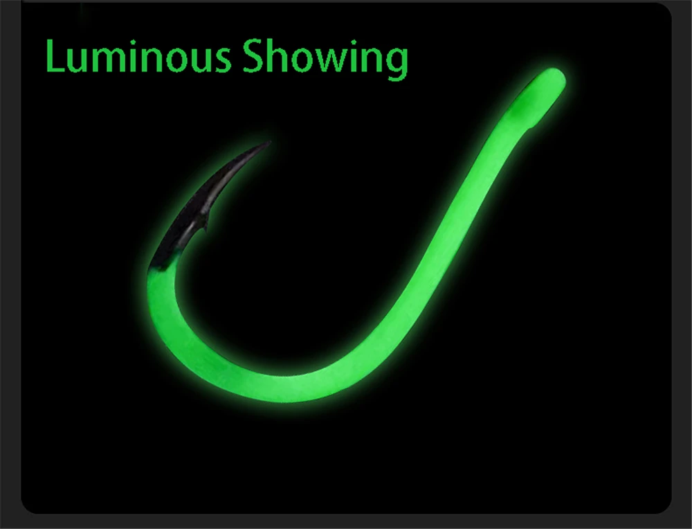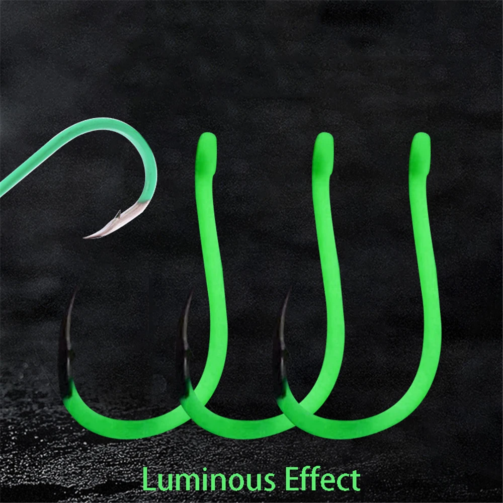 500 unids/lote anzuelo de Pesca luminoso con anillo boca torcida ojos de púas carpa de alto carbono accesorios de aparejos de Pesca de mar nocturno Pesca