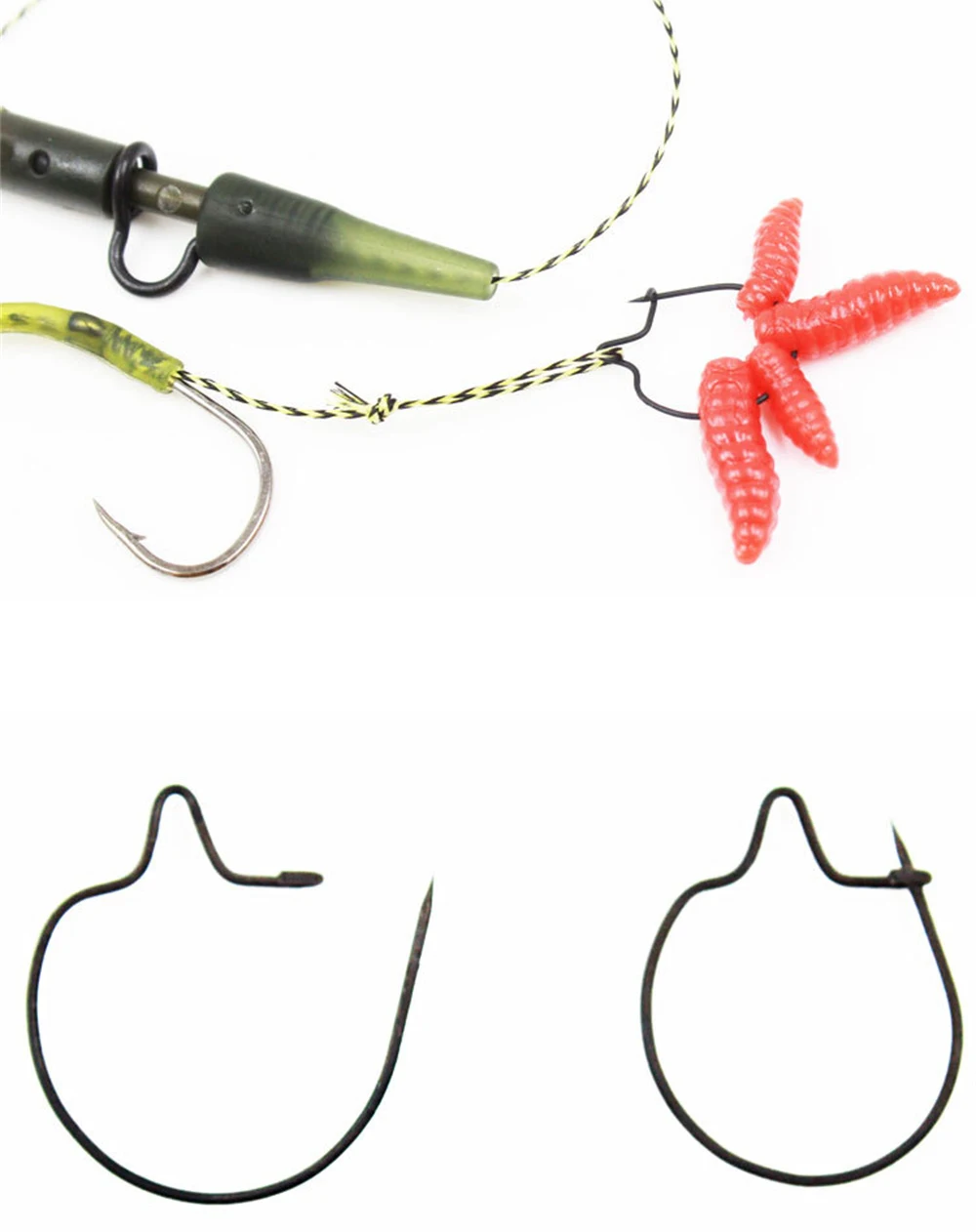 500 unids/lote aparejos de Pesca de carpa Clips de gusano accesorio de Pesca de carpa para anzuelo de gusano anillo de cebo aparejos terminales conector de aparejos de Pesca