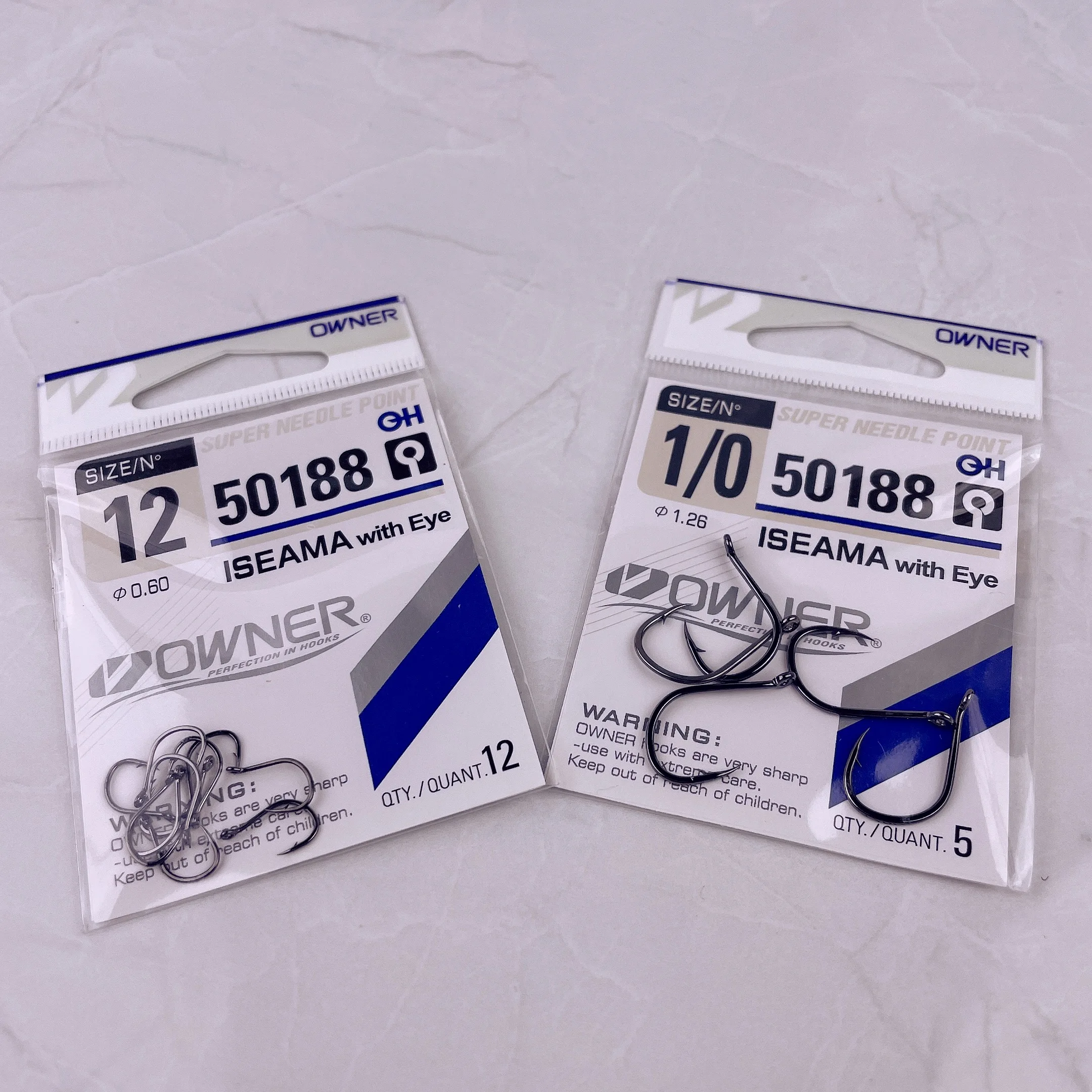 50188 Iseama anzuelo de pesca de carpa, anzuelo circular compensado, anzuelo de pesca con mosca individual, anzuelo de mar con púas, caja de accesorios para aparejos