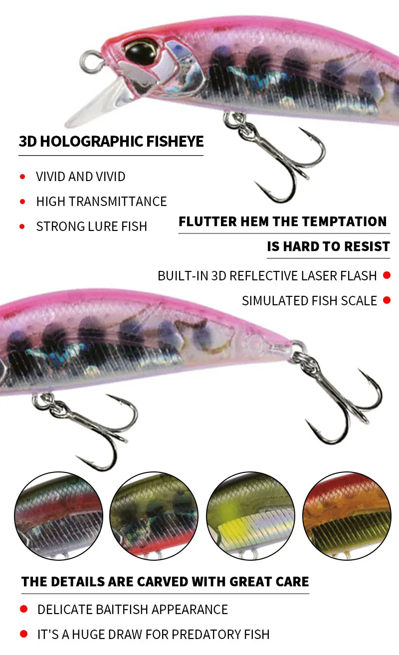 50mm 4,5g Japón Mini Señuelos de Pesca de pececillo hundido Jerkbaits Peche cebo Artificial Wobbler señuelo para pesca de carpa lubina de trucha