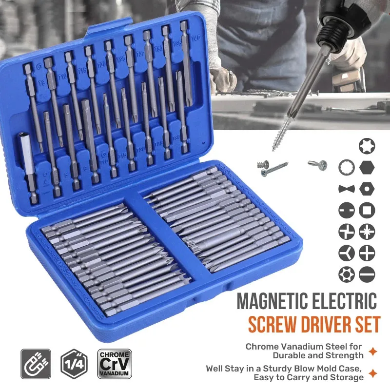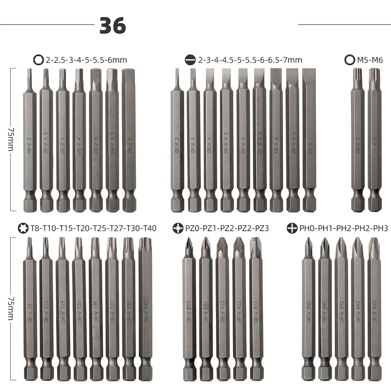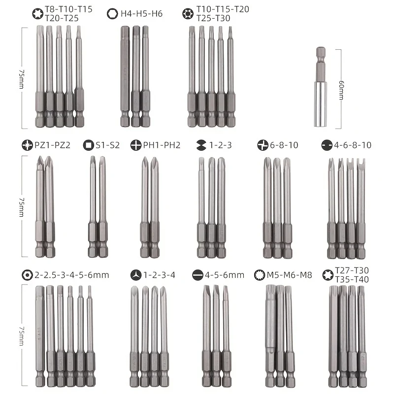 SCREW DRIVER SET: 75mm EXTRA LONG SIZE: Easily reach hard-to-reach areas with the 75mm extra long bit, ideal for complex tasks.