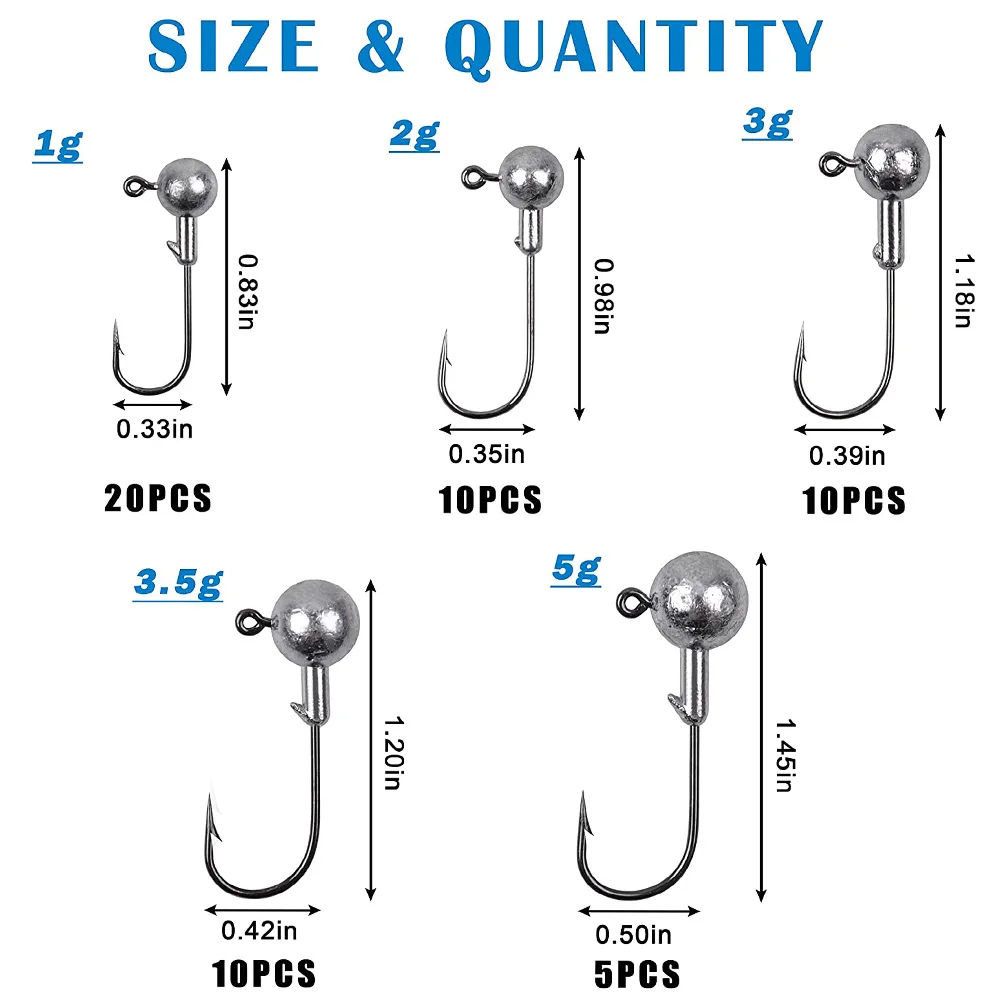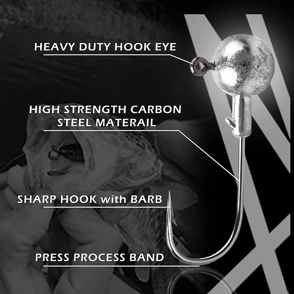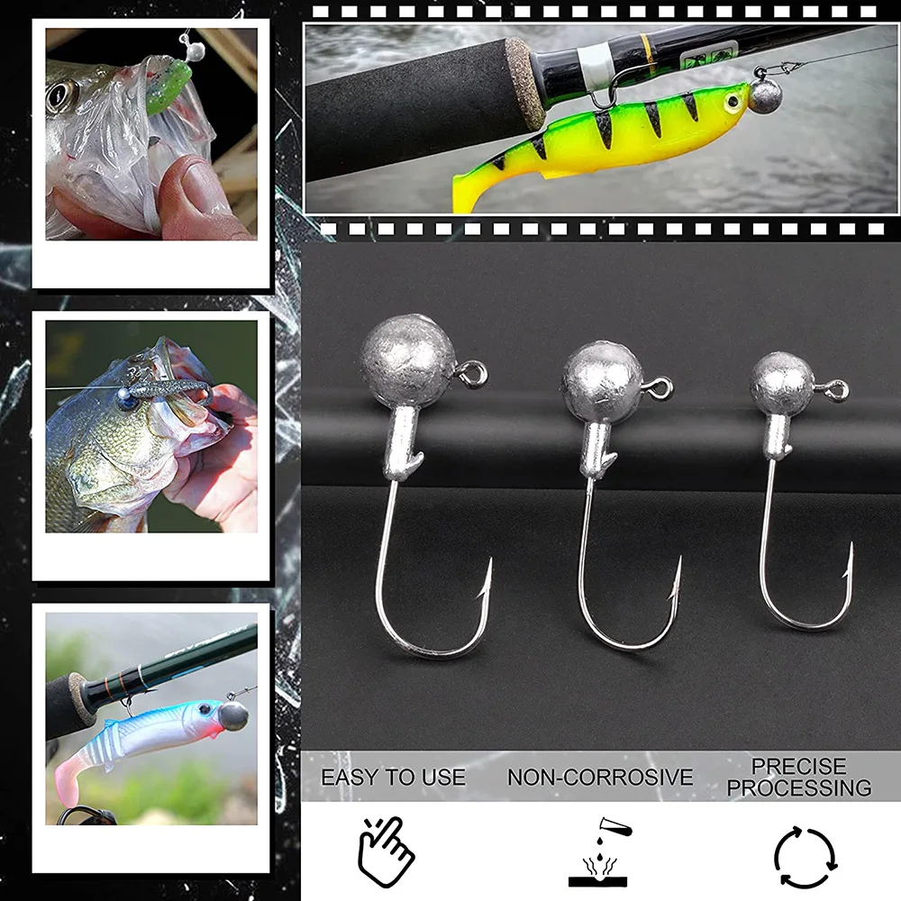 Juego de ganchos para cabezales de anzuelo Crappie, cabezales de anzuelo sin pintar, surtido de ganchos para cabeza de plantilla de fútbol para Bass Flounder, kit de pesca de agua salada, cabezales de plantilla para tipo de pez surtido