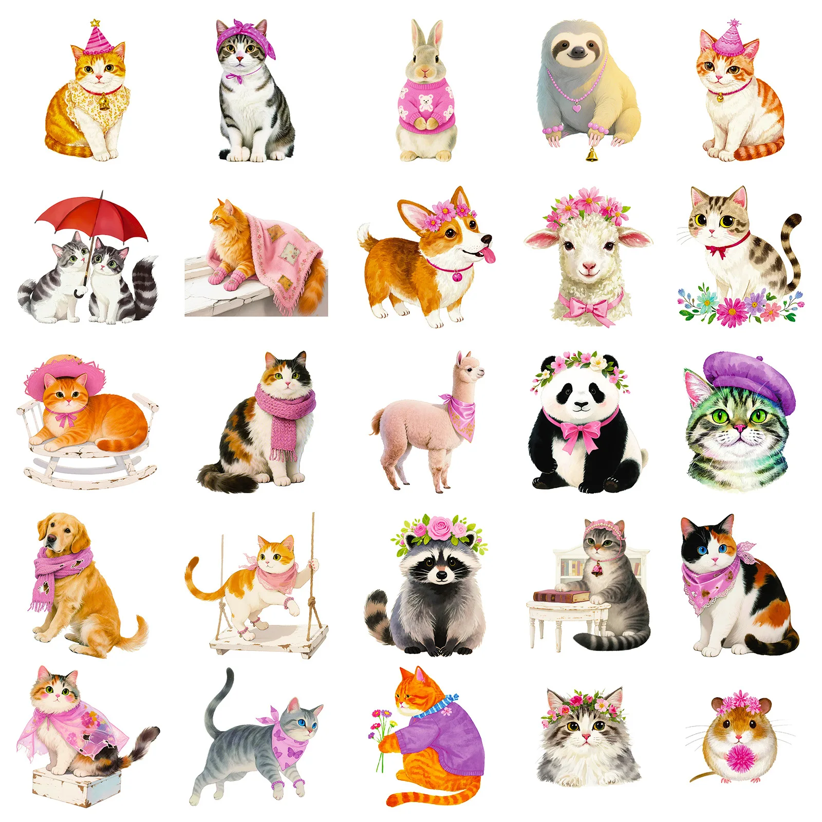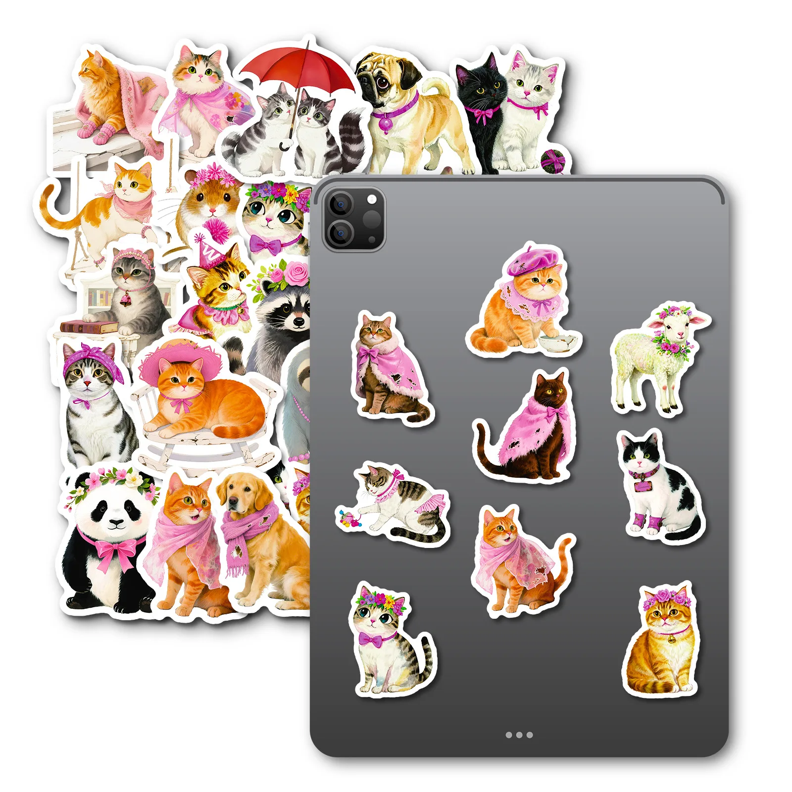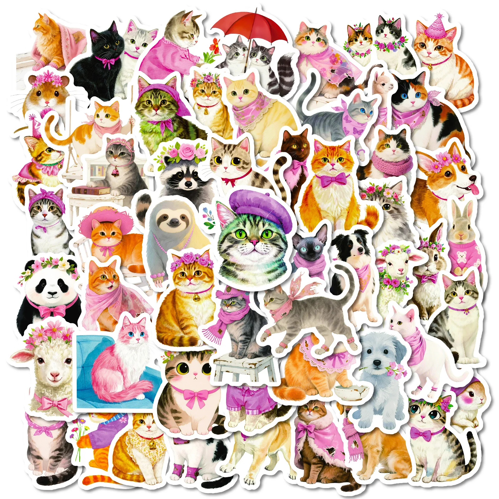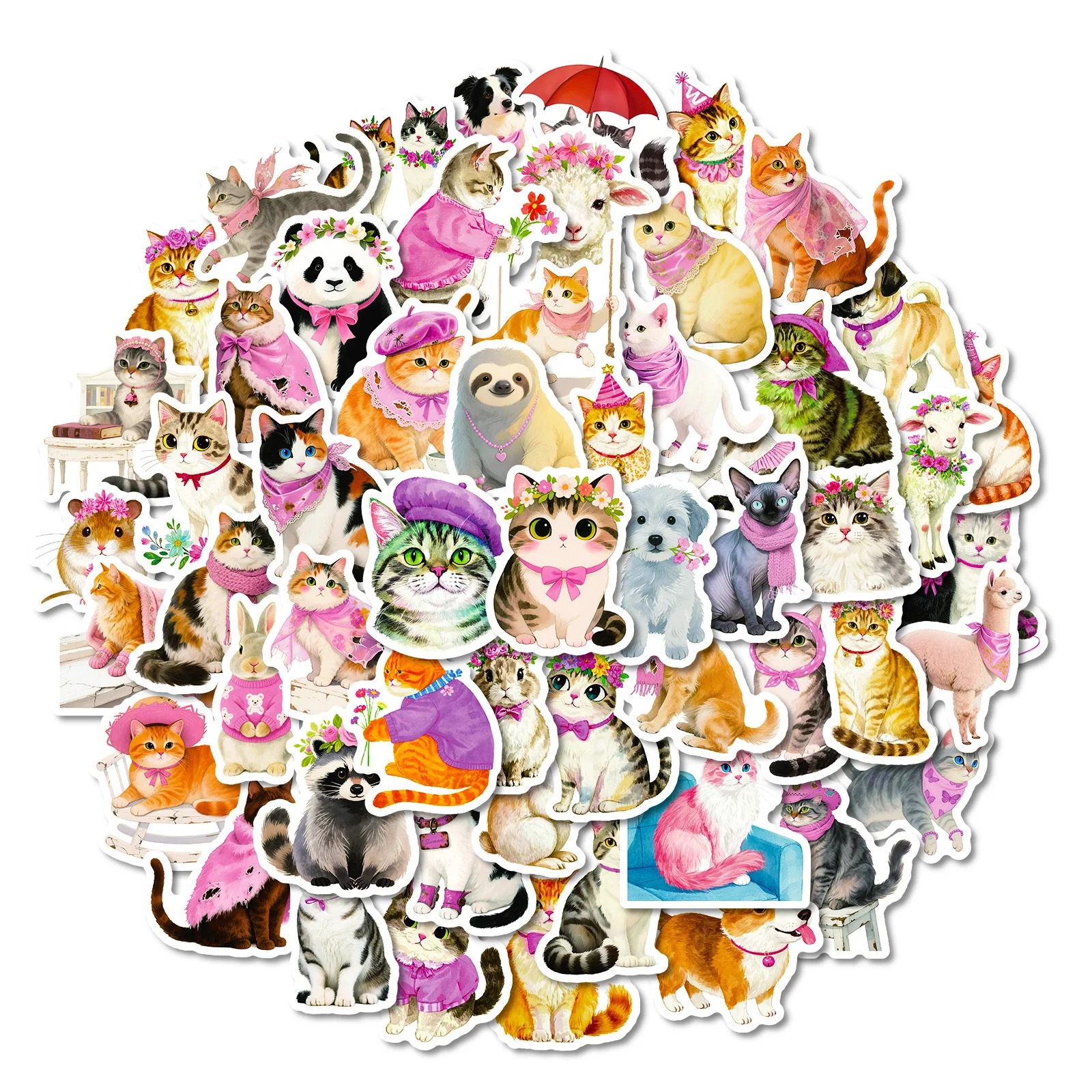 56 Uds lindos gatos pegatinas de animales DIY teléfono guitarra portátil maleta taza pegatinas impermeables