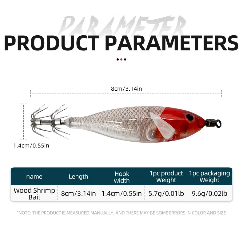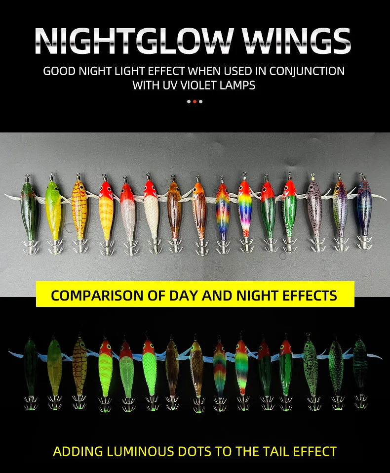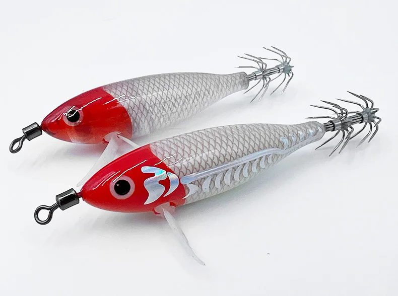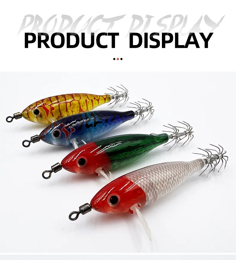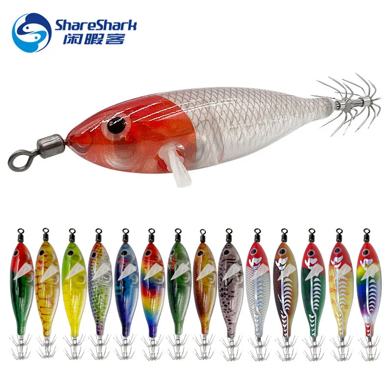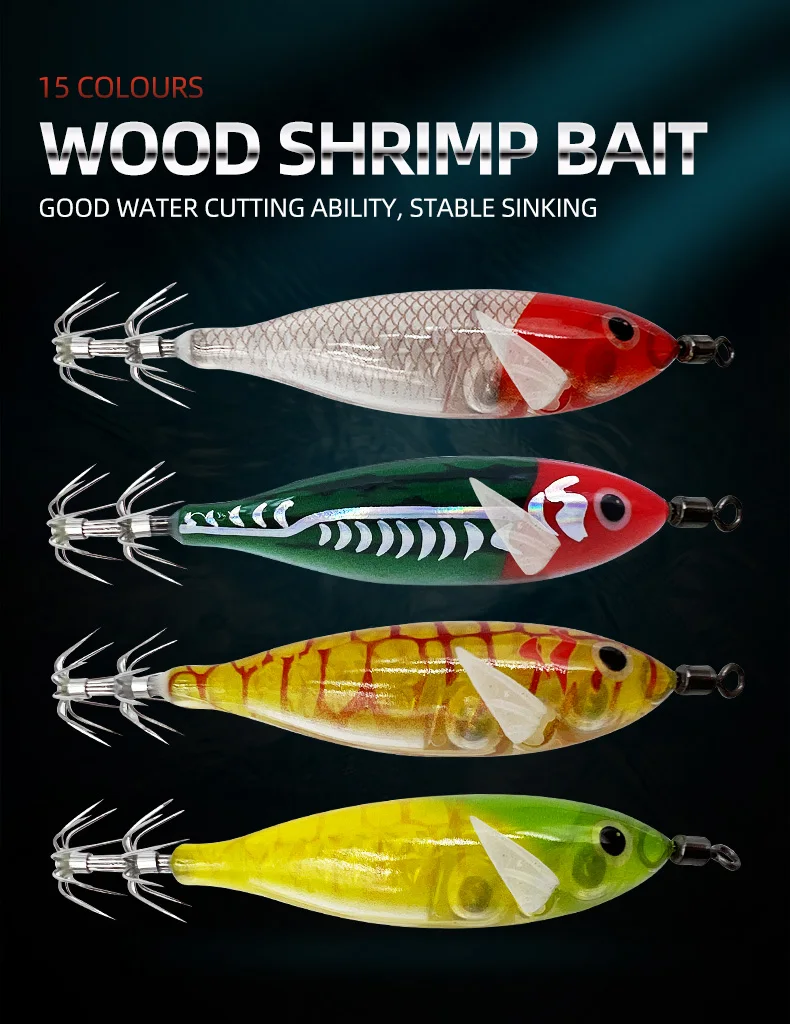 Señuelos luminosos de madera para camarones de simulación, plomo, cebo para camarones, anzuelo, anzuelo de calamar, pesca en el mar, señuelo de calamar y pulpo