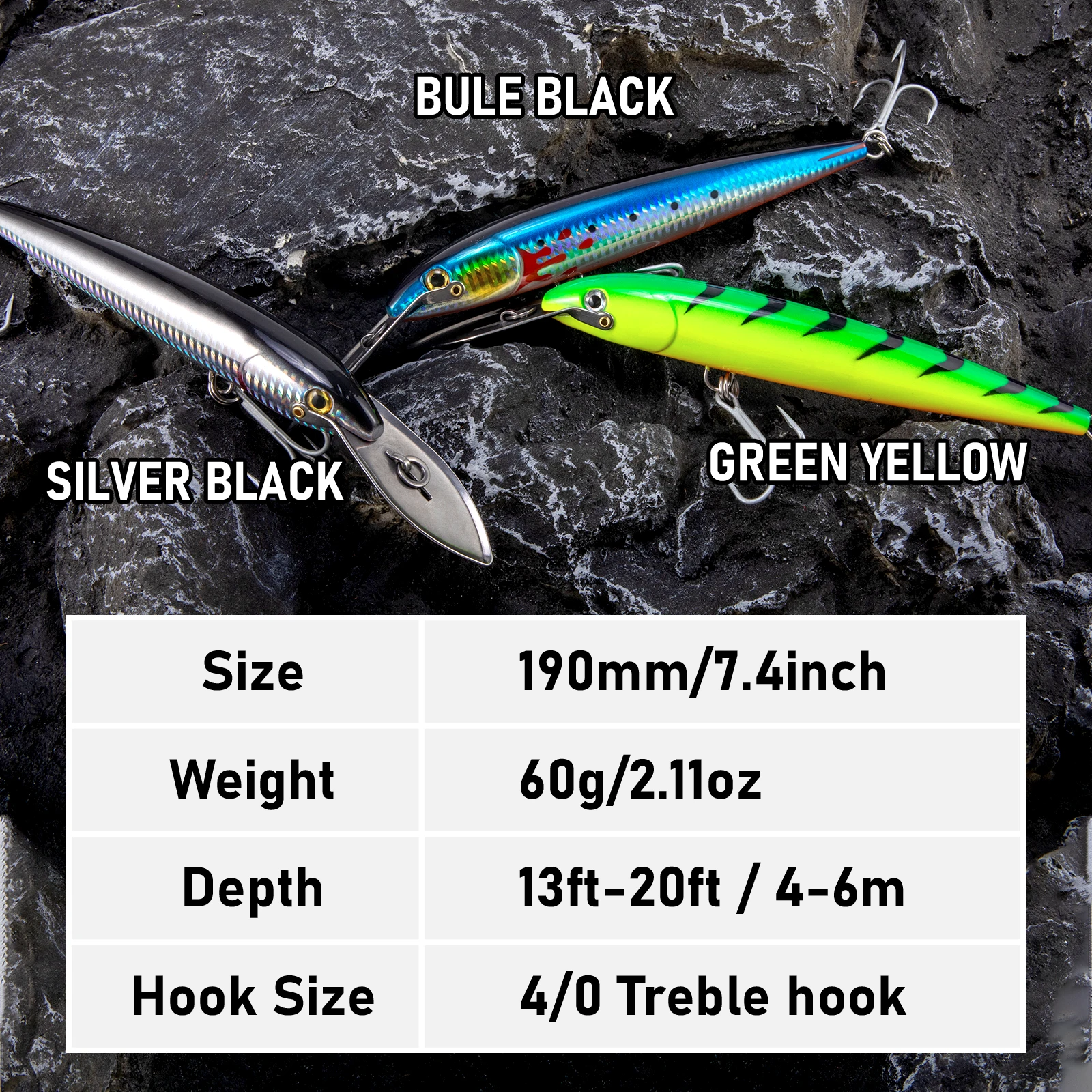 【Aplicación ideal】Este señuelo confiable puede contribuir a largas actividades de pesca. Es ideal para agua salada, excelente rendimiento al pescar.