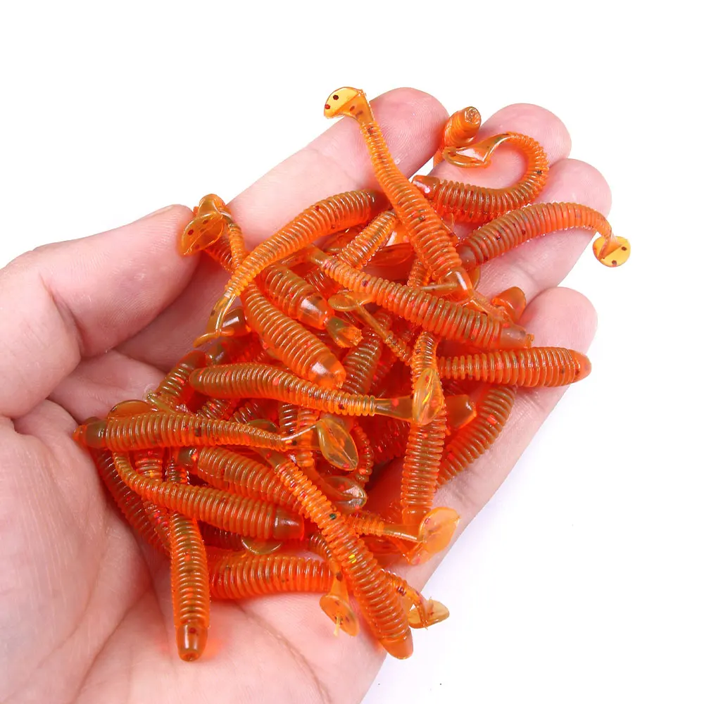 5cm 10 unids/pack suave T cola señuelo de Pesca conjunto larva gusano Swimbaits cebos de silicona Pesca lubina carpa aparejos de Pesca cebo de silicona