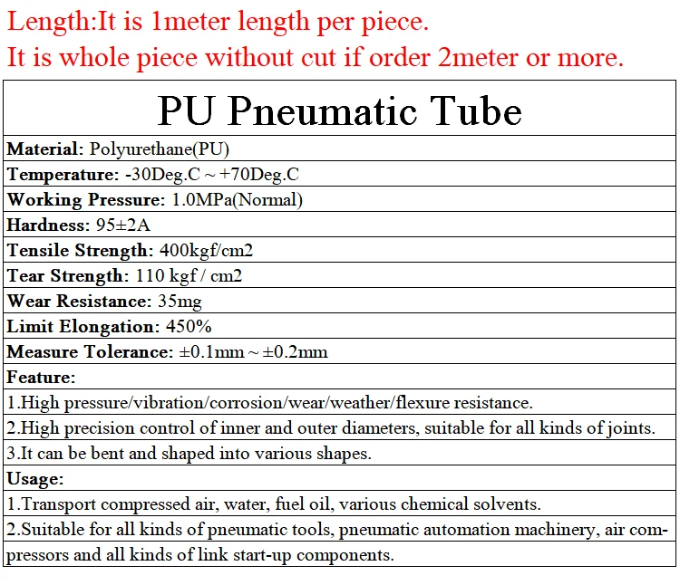 5M 2,5 4 5 6 6,5 8 10 12 14 16mm de diámetro tubo de PU de alta presión piezas neumáticas manguera Flexible agua aire compresor de Gas tubo suave
