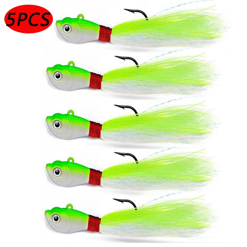 HIGH QUALITY MATERIALS: Eupheng bucktail jigs feature with MUSTAD Jig Hooks, strong and durable, high strength and corrosion resistance in both freshwater and saltwater, precision molded bionic lead head have amazing details.