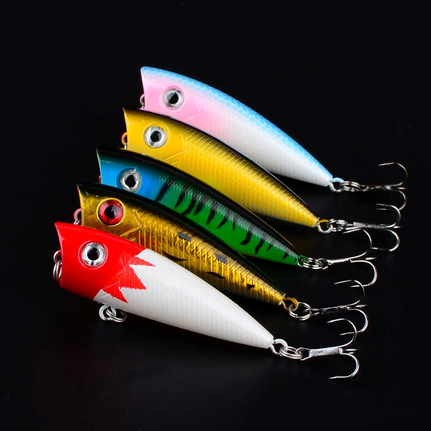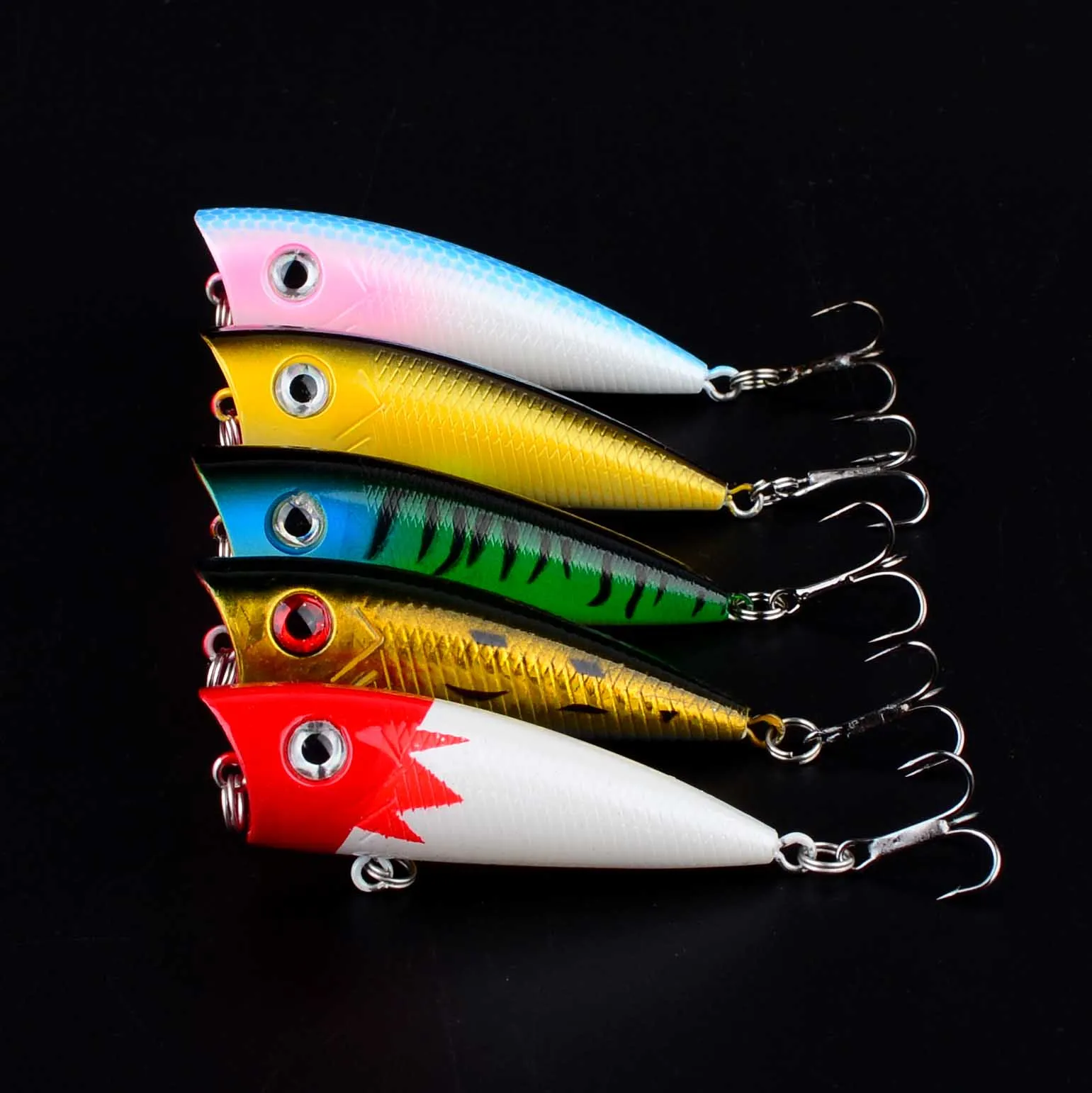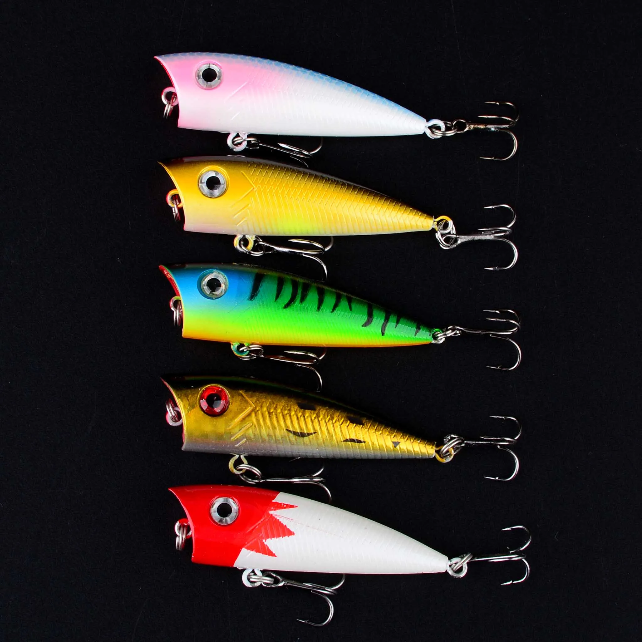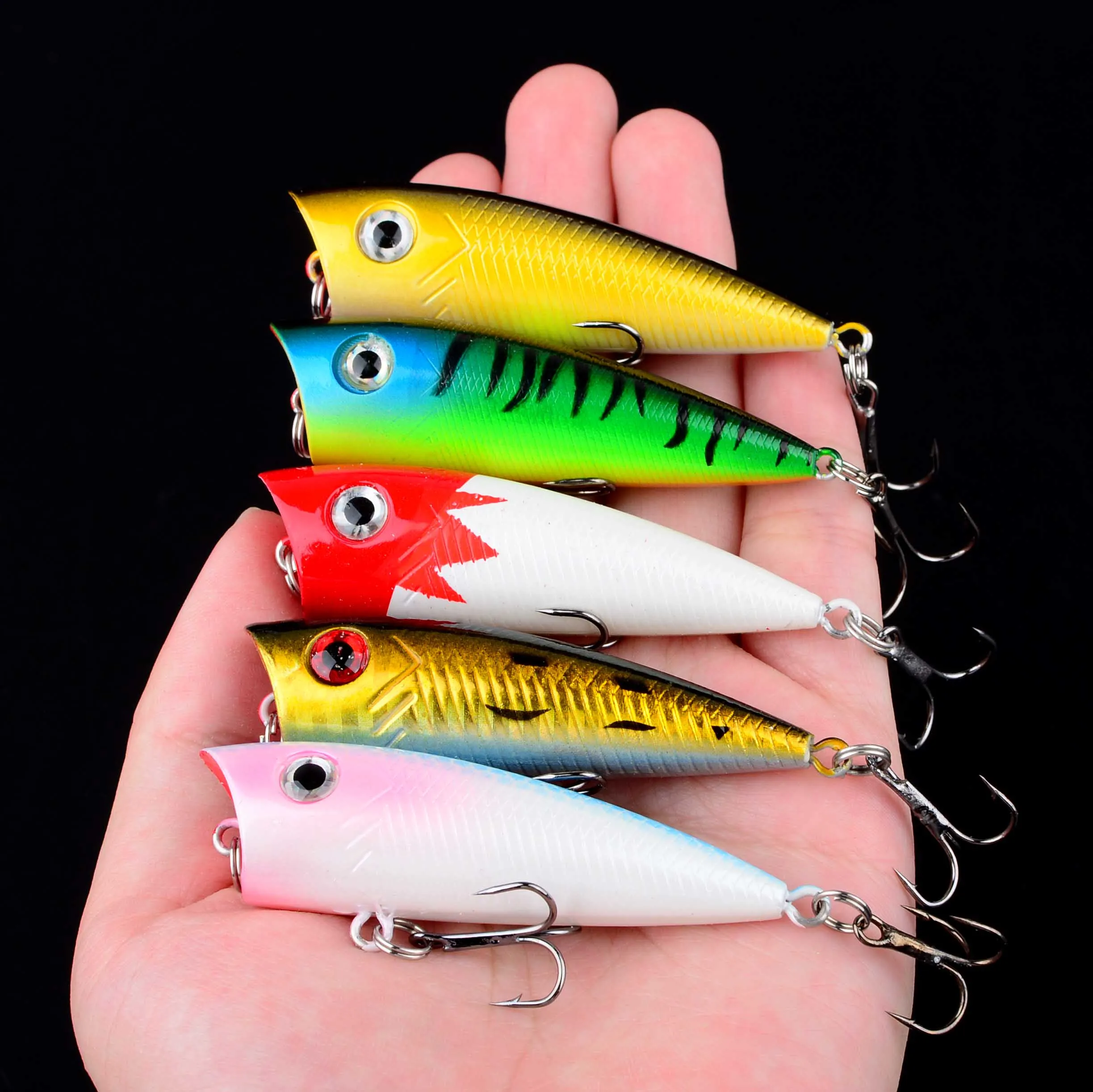 5Pcs Fishing Lures Topwater Popper Bait Hard Bait Trout Bass Artificial Wobblers Plastic Lure Fishing Tackle with Hooks