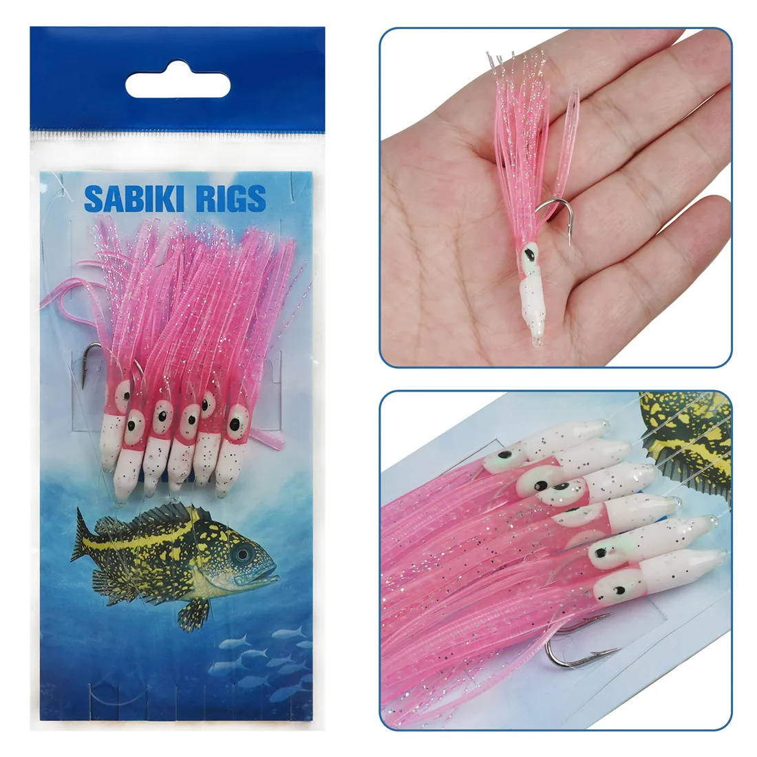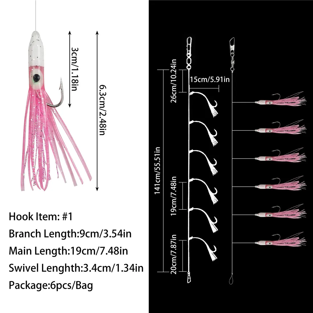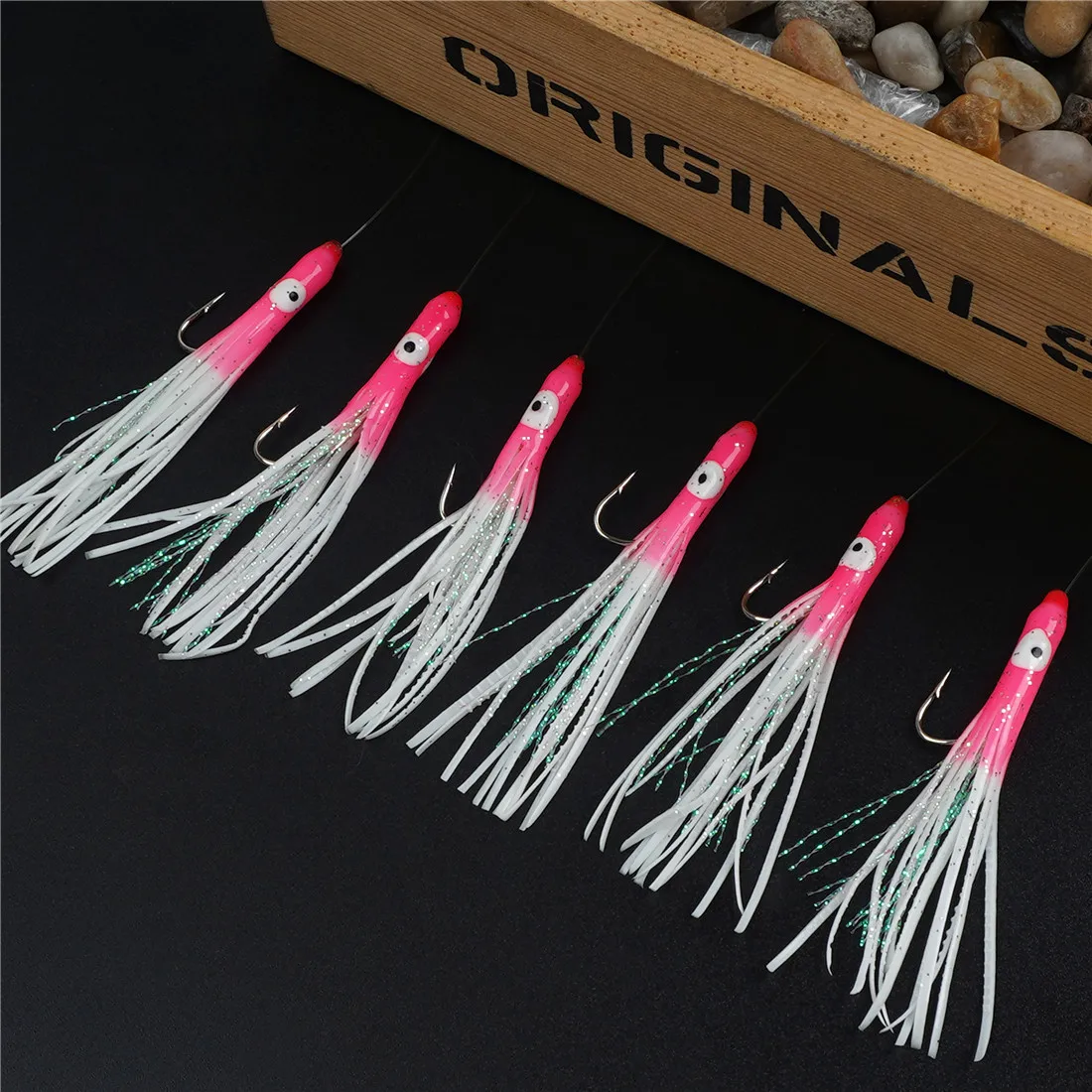 6/12 Uds. Faldas de calamar suaves, señuelos de pesca con anguilla, aparejos de pulpo de agua salada, cebo vivo, caballa, Snapper, cebo Artificial, anzuelos para peces