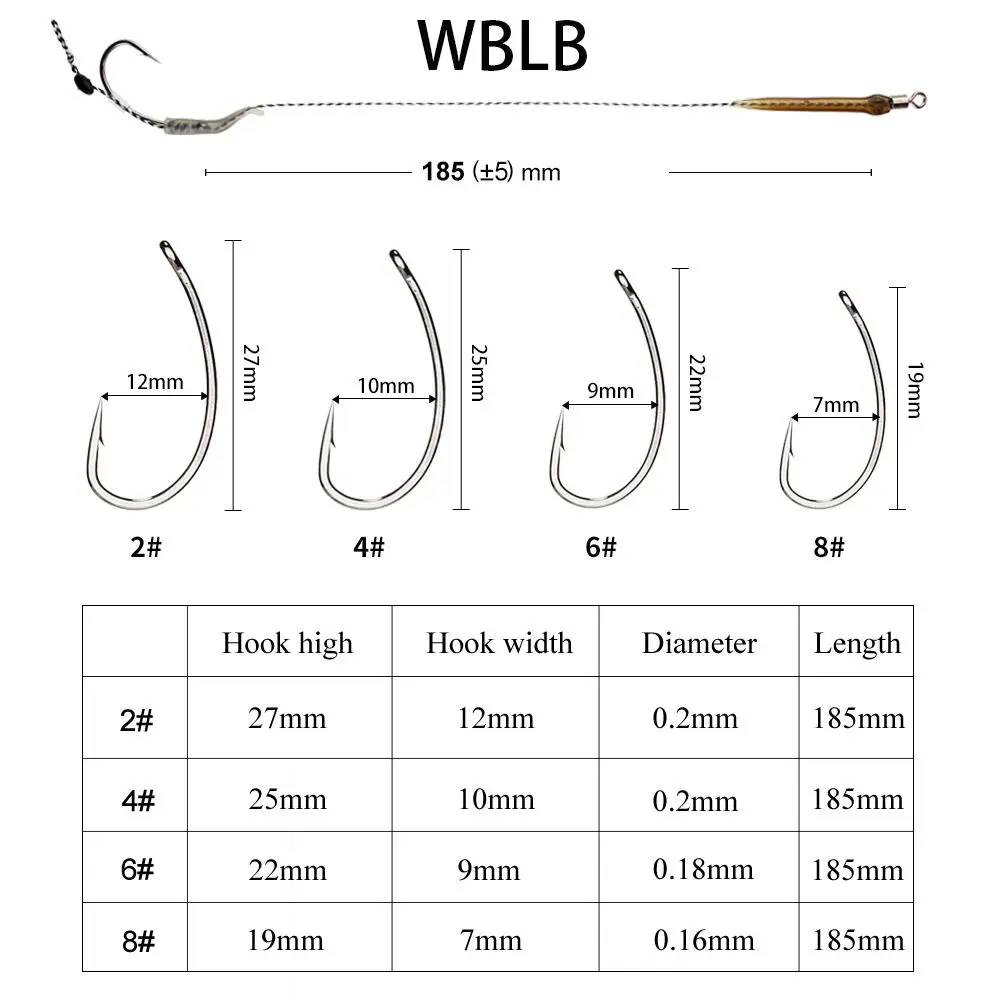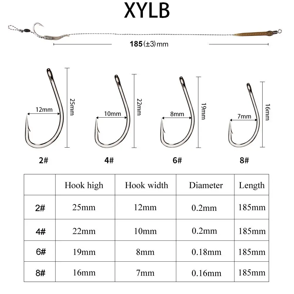 3. Versatile Leader Hooks: The hooks come in 2/4/6/8# sizes, offering versatility to match different fishing conditions and bait sizes. Whether you're using a feeder or fishing in Europe, these leader hooks are suitable for a variety of carp fishing techniques and scenarios.