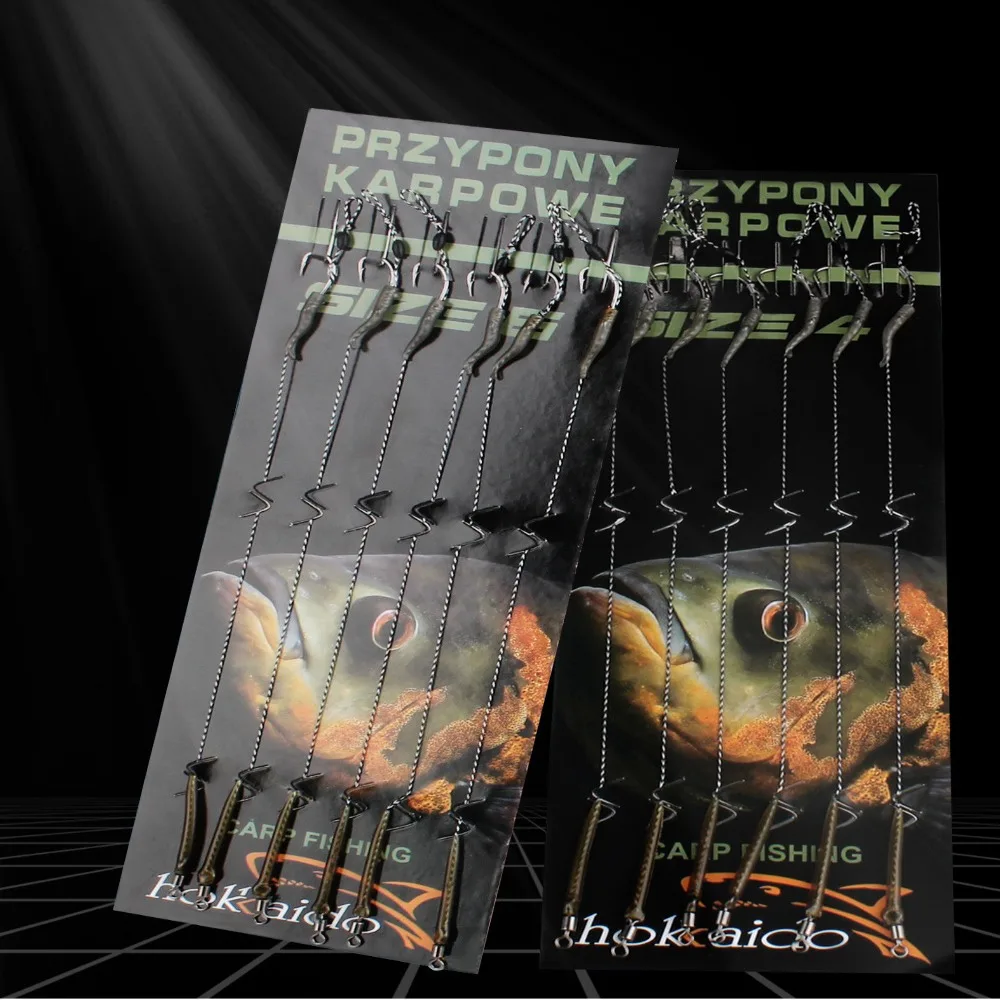 3. Versatile Leader Hooks: The hooks come in 2/4/6/8# sizes, offering versatility to match different fishing conditions and bait sizes. Whether you're using a feeder or fishing in Europe, these leader hooks are suitable for a variety of carp fishing techniques and scenarios.