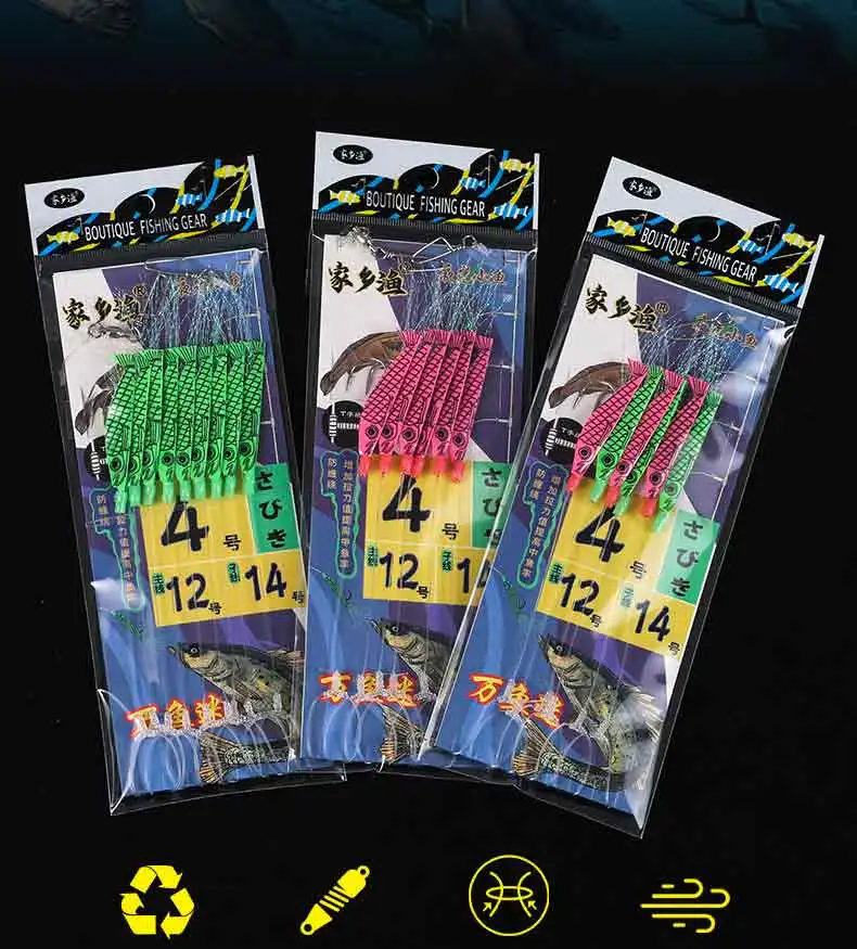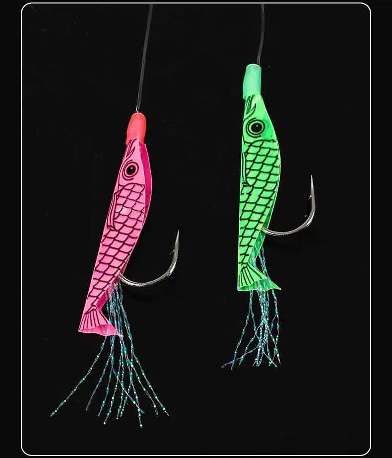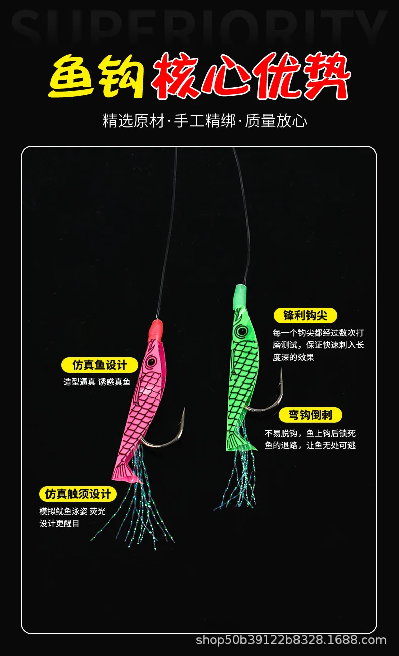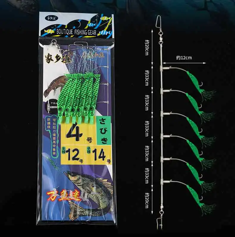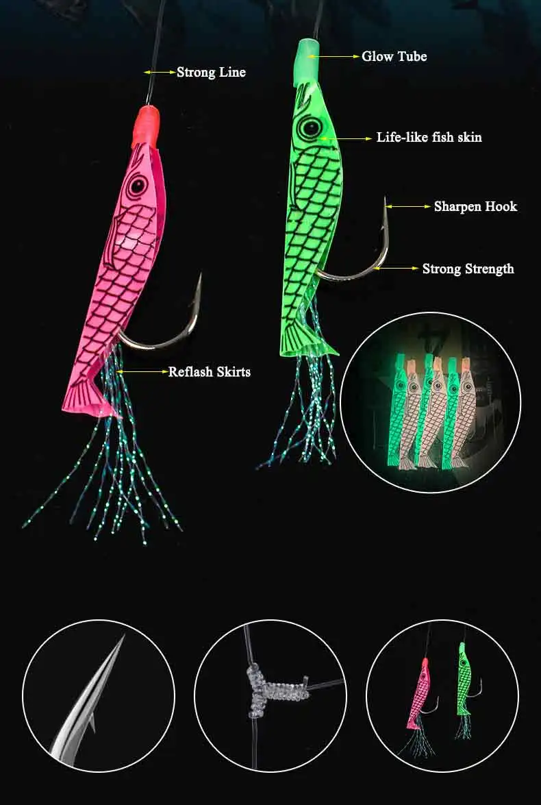 6/9 anzuelos Sabiki Rigs Señuelos de pesca de agua salada aparejos de cebo piel de pescado Real gancho de cuerda caballa que brilla en la oscuridad Flash Sabiki Rigs