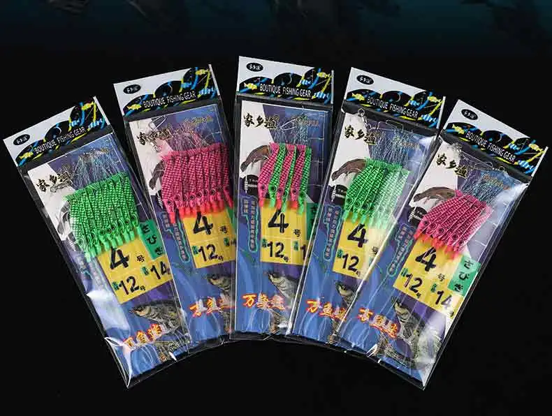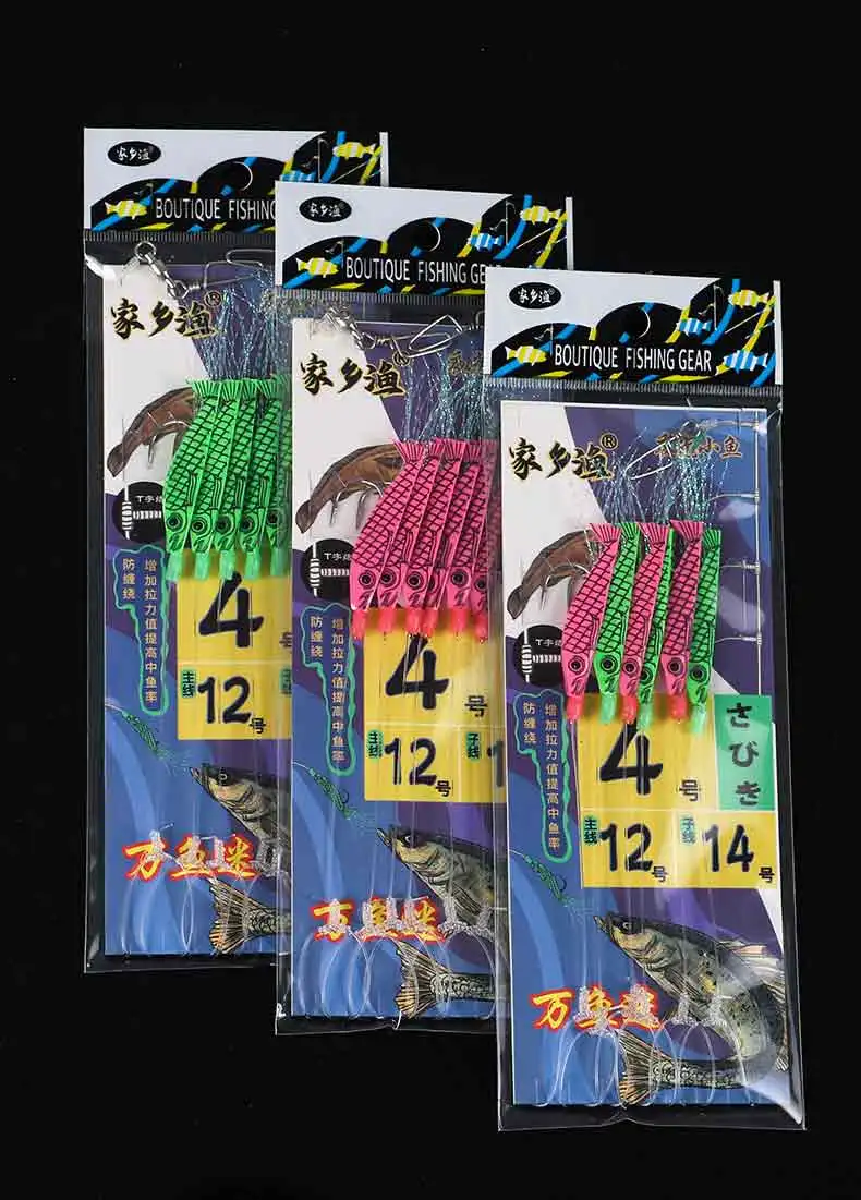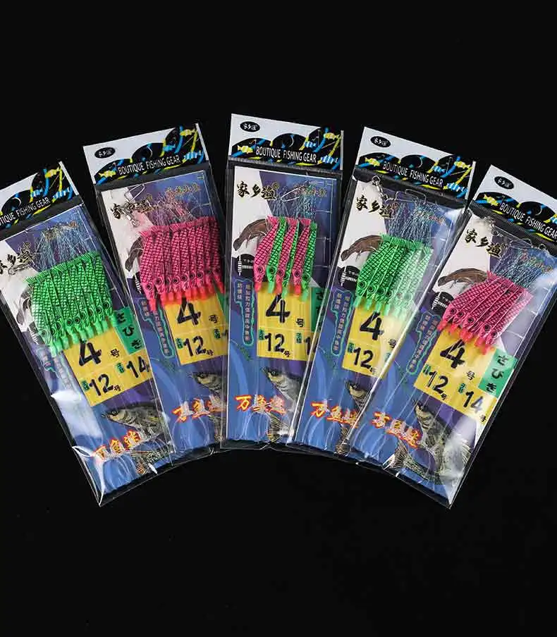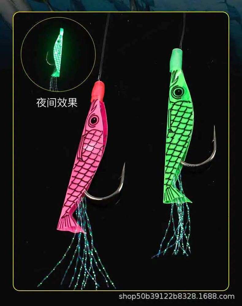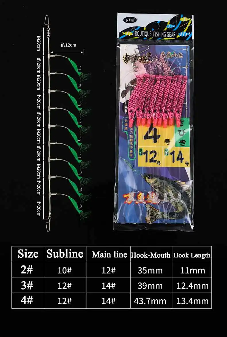 6/9 anzuelos Sabiki Rigs Señuelos de pesca de agua salada aparejos de cebo piel de pescado Real gancho de cuerda caballa que brilla en la oscuridad Flash Sabiki Rigs