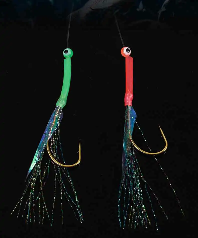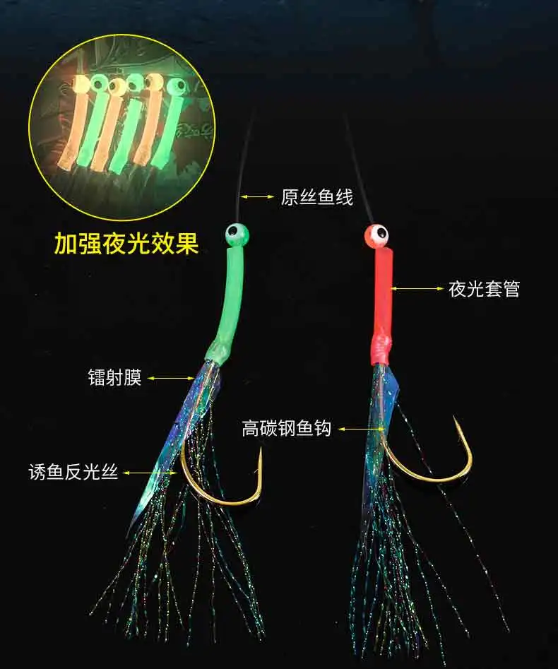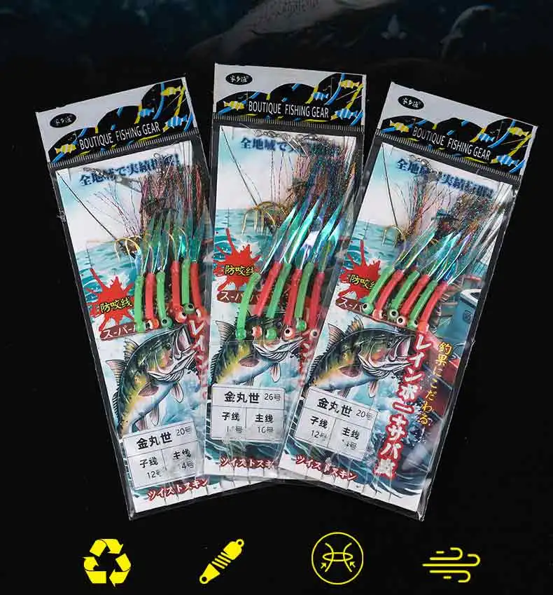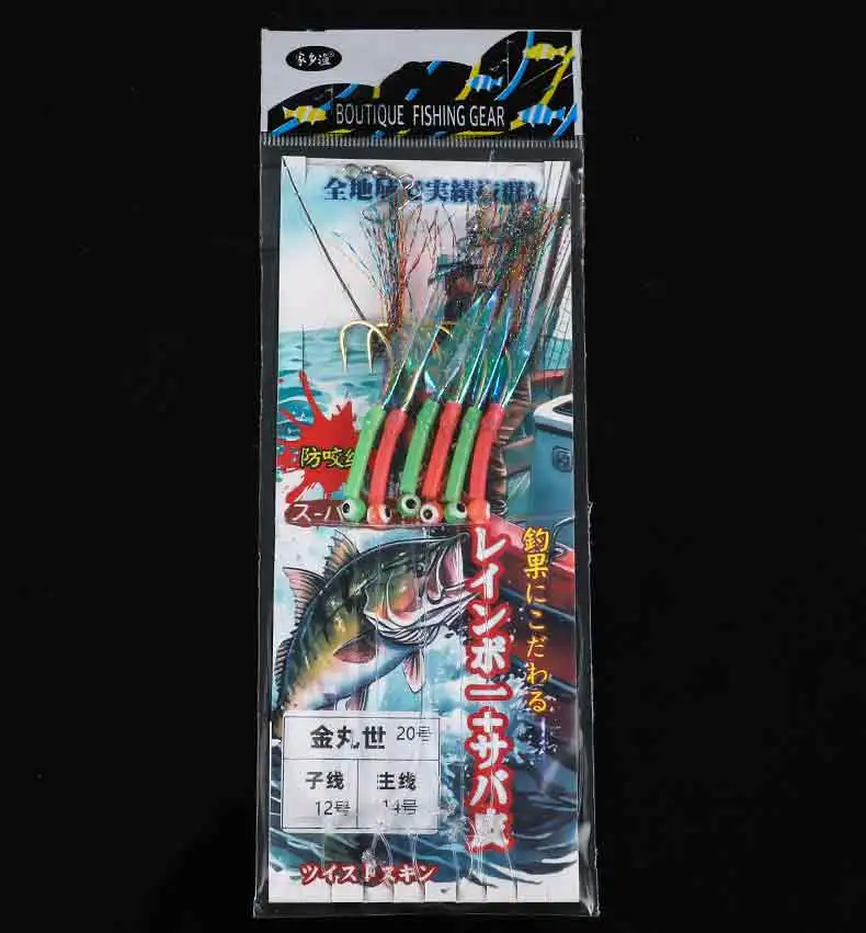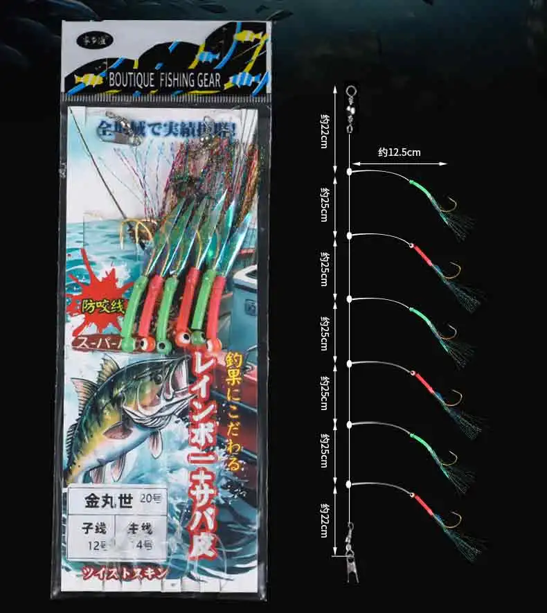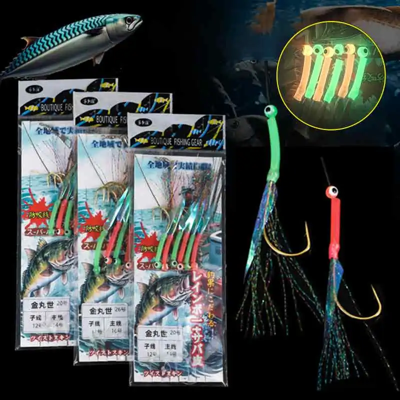 6 anzuelos Sabiki, antimordeduras, Señuelos de pesca de agua salada, aparejos de cebo, piel de pescado Real, gancho de cuerda, caballa, brillo, Flash, aparejos Sabiki