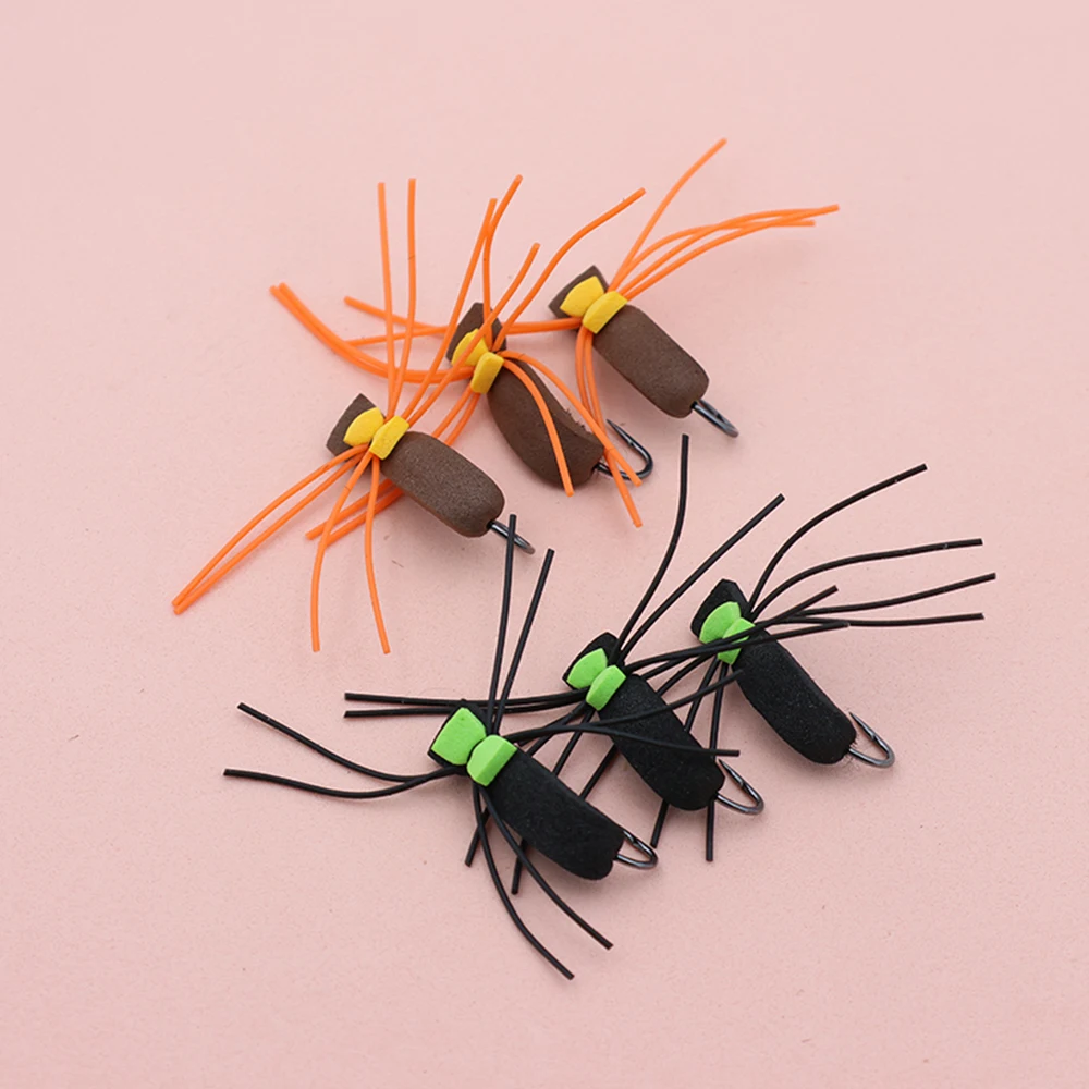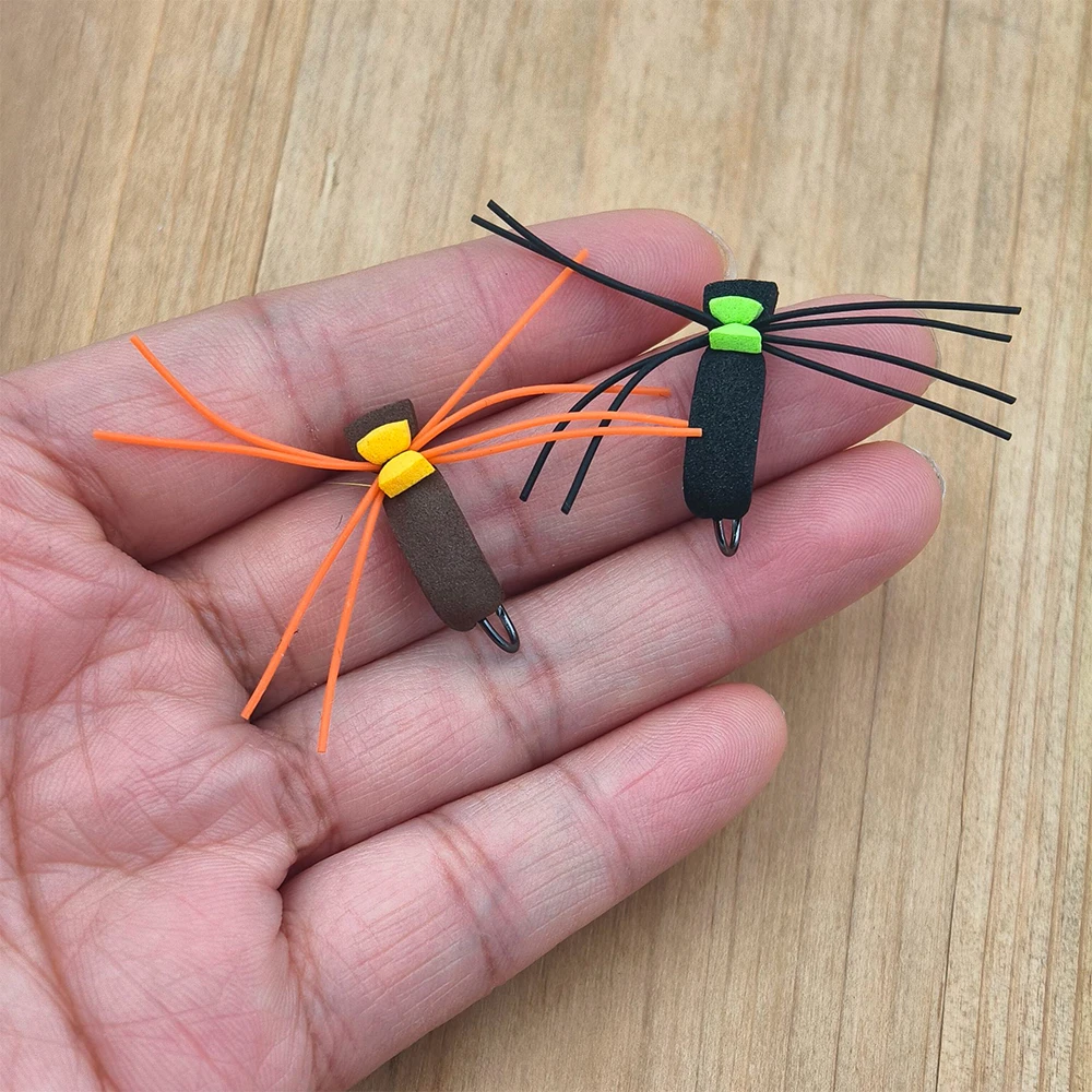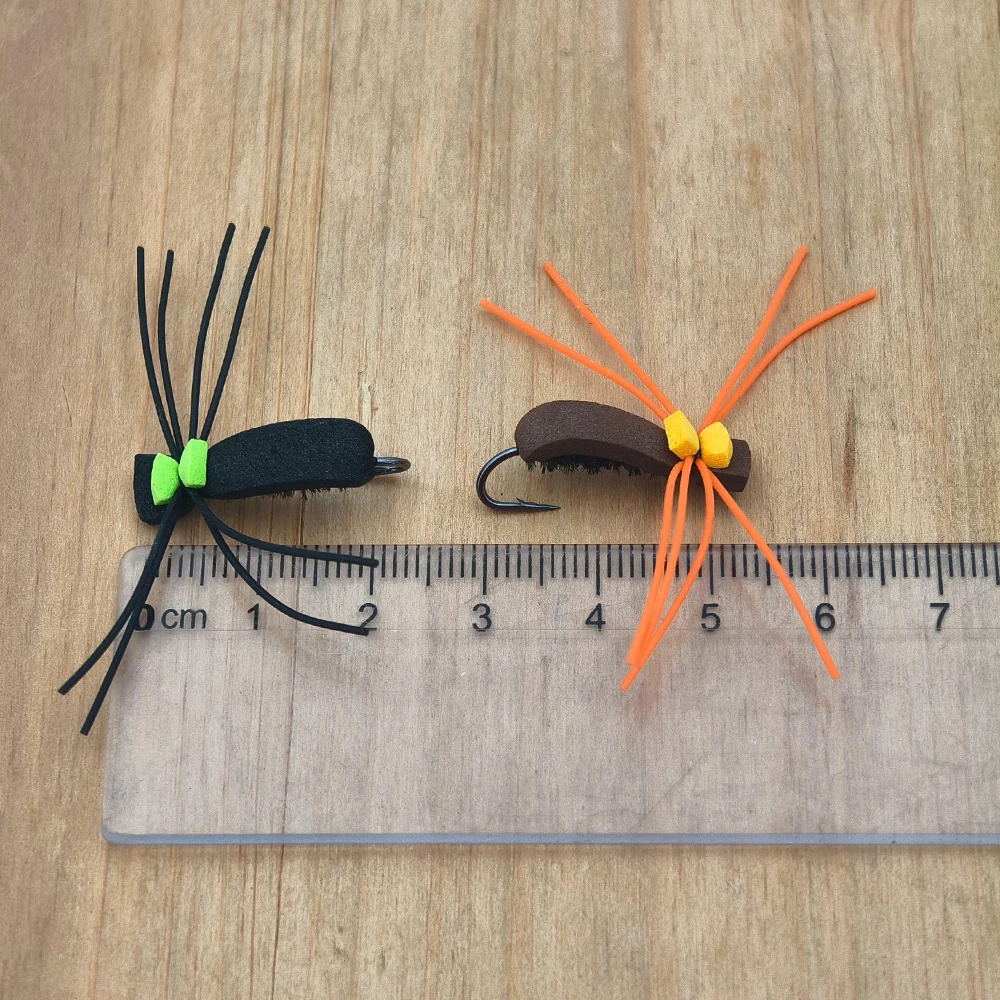 6 uds.#Señuelo de pesca con mosca con indicador de escarabajo de espuma de 10 ganchos, moscas secas terrestres negras y naranjas para pesca de carpa y trucha, pez amarillo