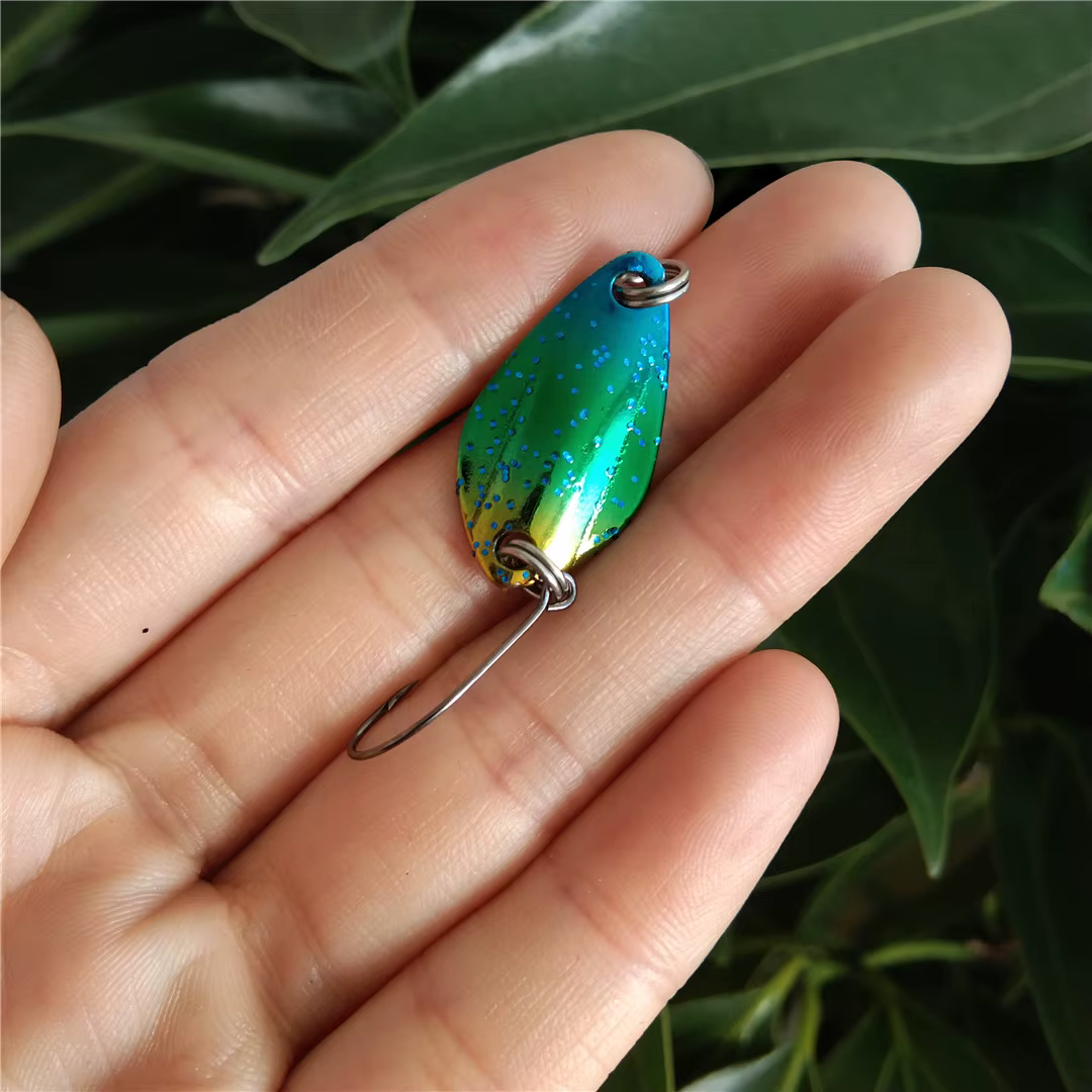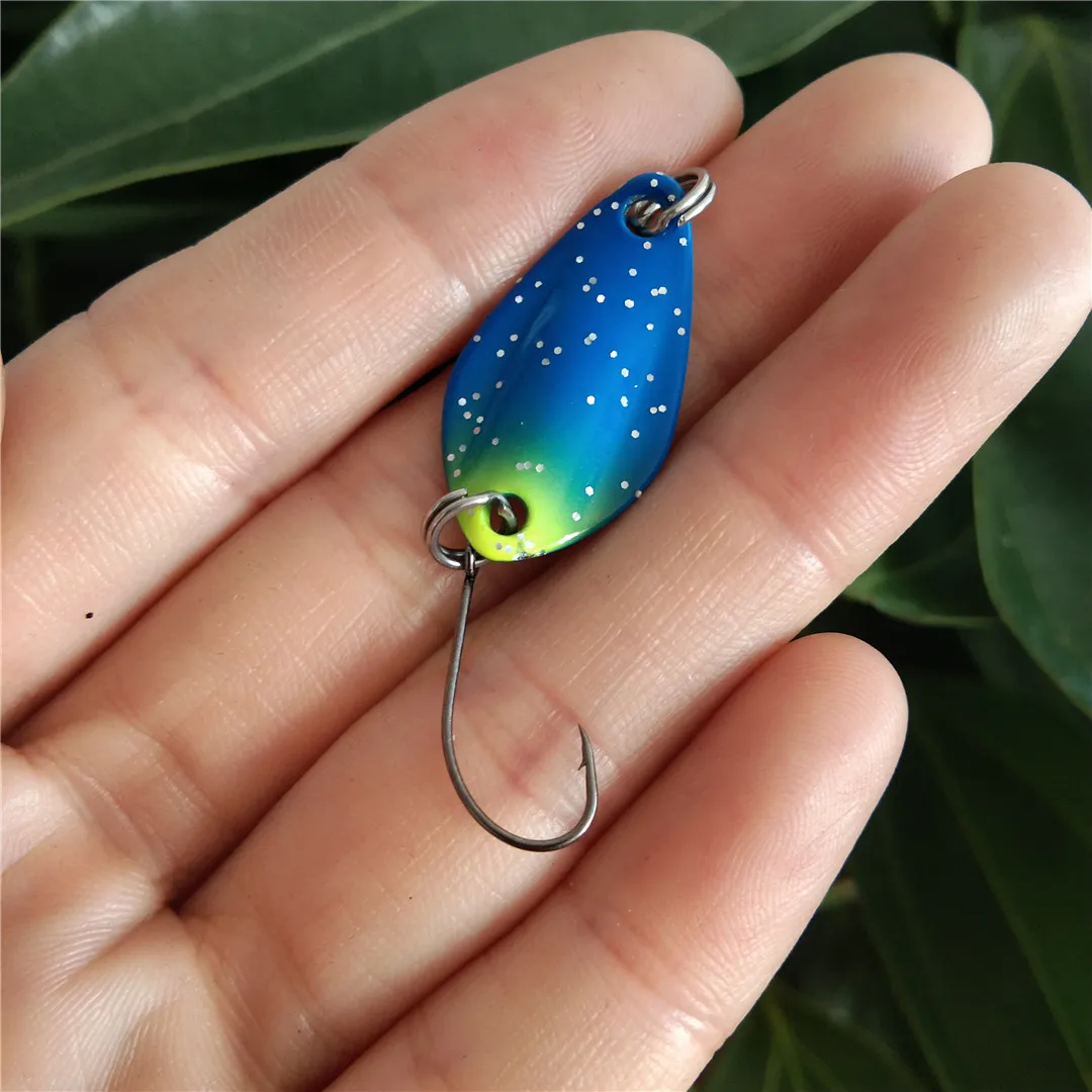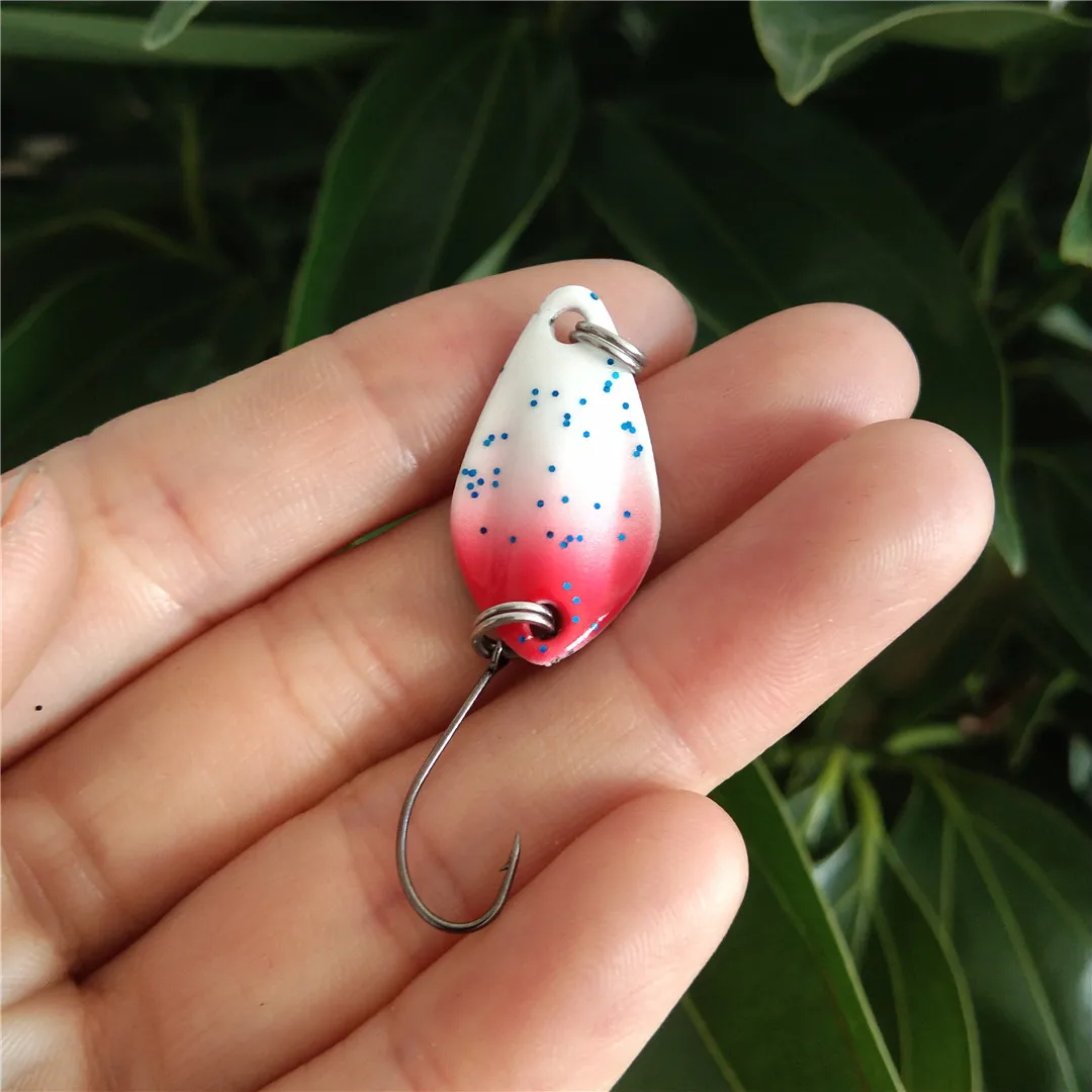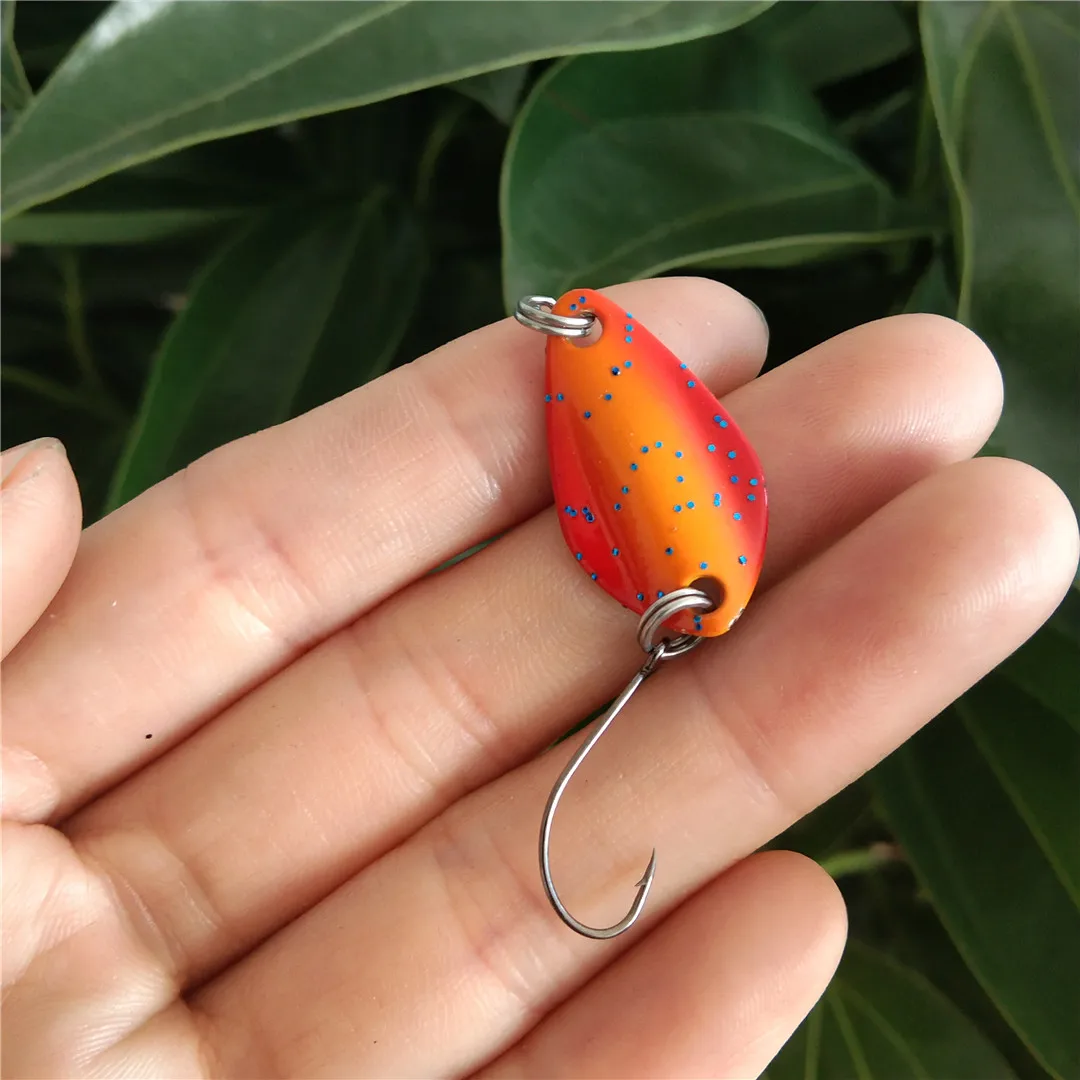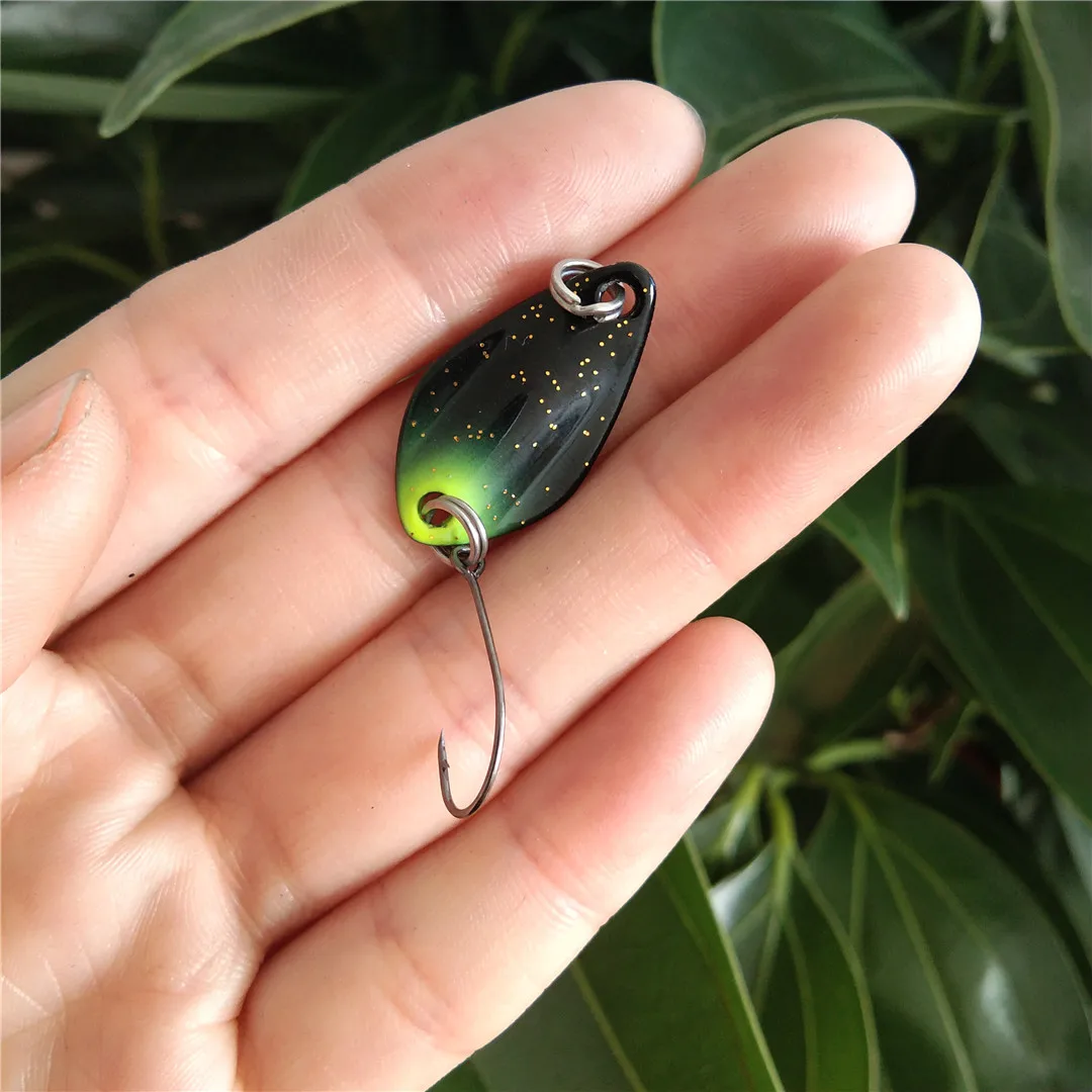 6 uds 1g 2g cucharas de pesca señuelos de trucha de Metal pequeño cebo duro Spinner cuchara de pesca con un solo gancho