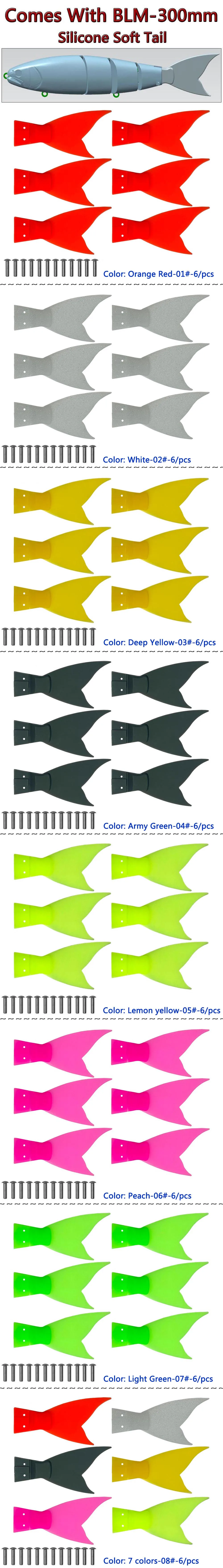 6 uds 300mm cebo articulado cola de repuesto para cebo Gaint resistente Japón colas de silicona construcción para mayor durabilidad