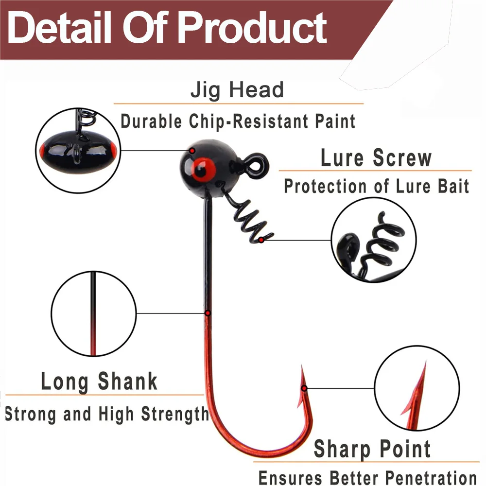 1.Los ganchos ponderados Jig Head están recubiertos con pintura pulida y confiable resistente a astillas que proporciona durabilidad para resistir la abrasión mientras se pesca con una cubierta pesada.