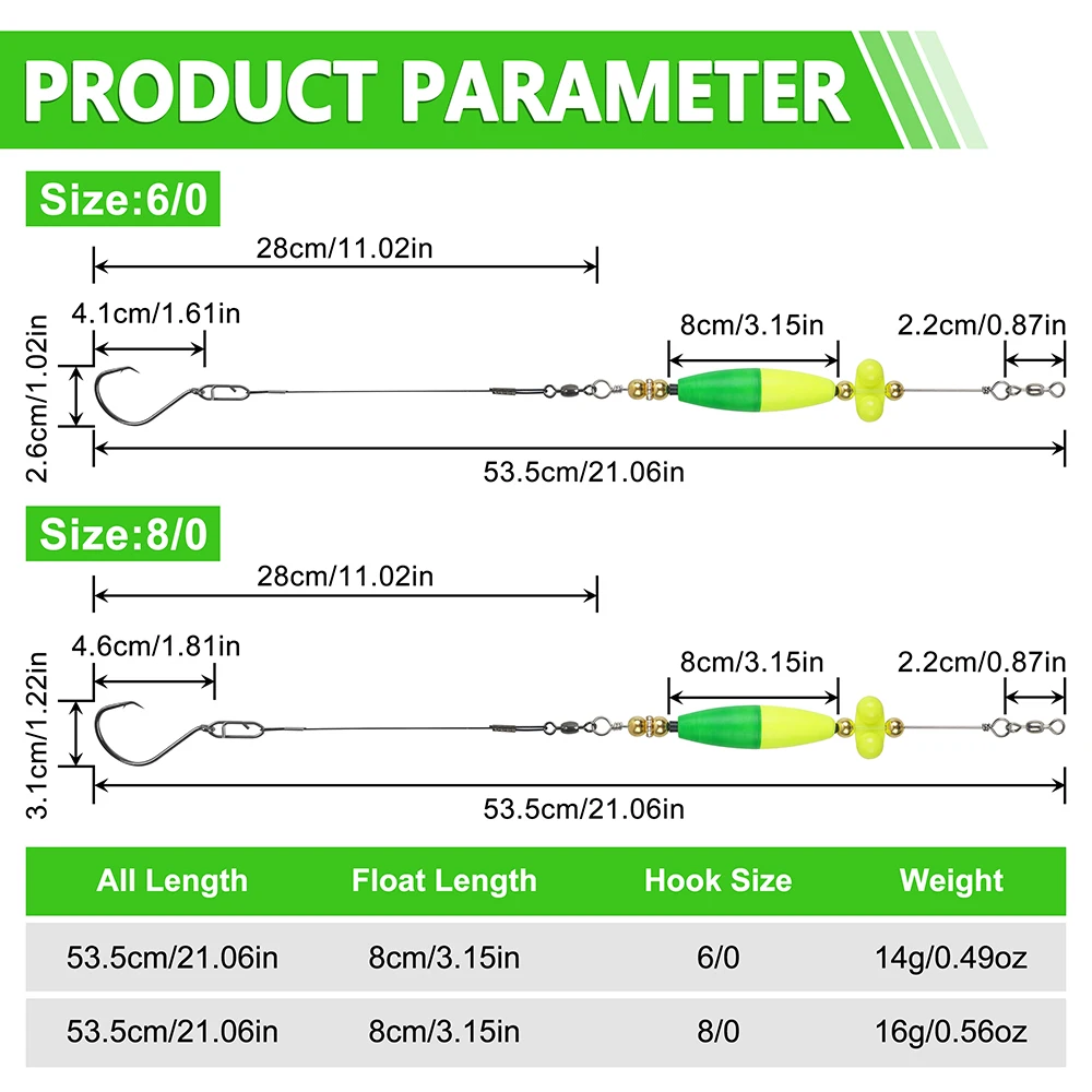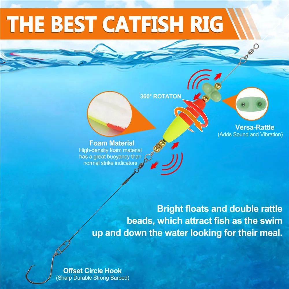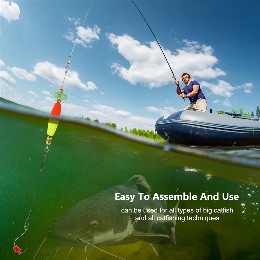 1.Como uno de los aparejos de pesca de bagre más populares, el equipo de garantía de bagre es famoso por su capacidad para estimular todos los sentidos (no solo el aroma) del bagre para desencadenar golpes.A través de la combinación de anzuelo, flotador, sonajero, cuenta, señuelo, plomo, broche, giro y líder, el aparejo seguro para bagre seduce a los peces grandes utilizando olor, visión, sonido y vibración, lo que lleva a más golpes y enganches más duros.