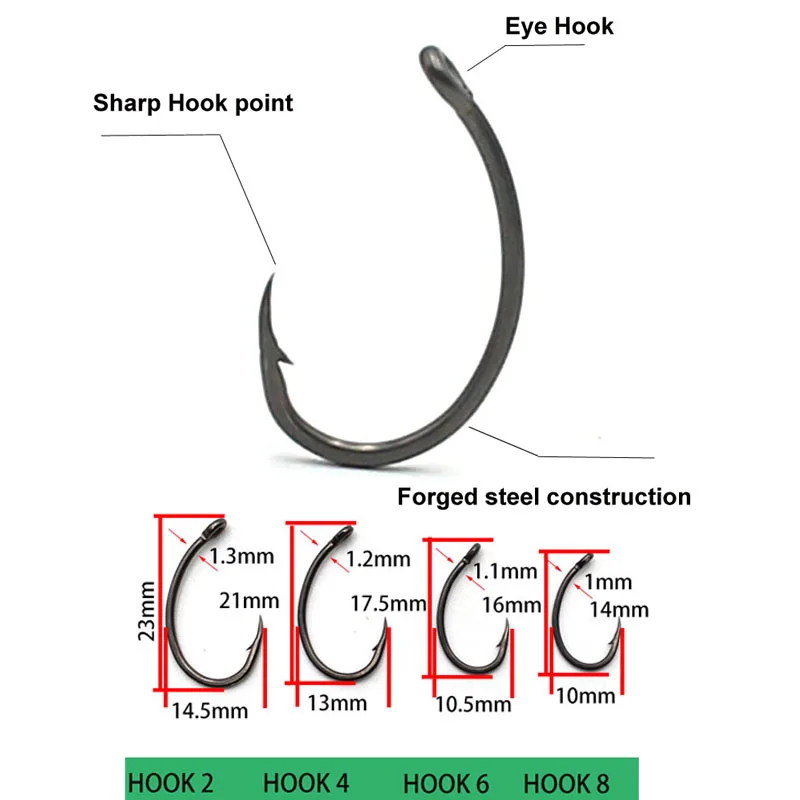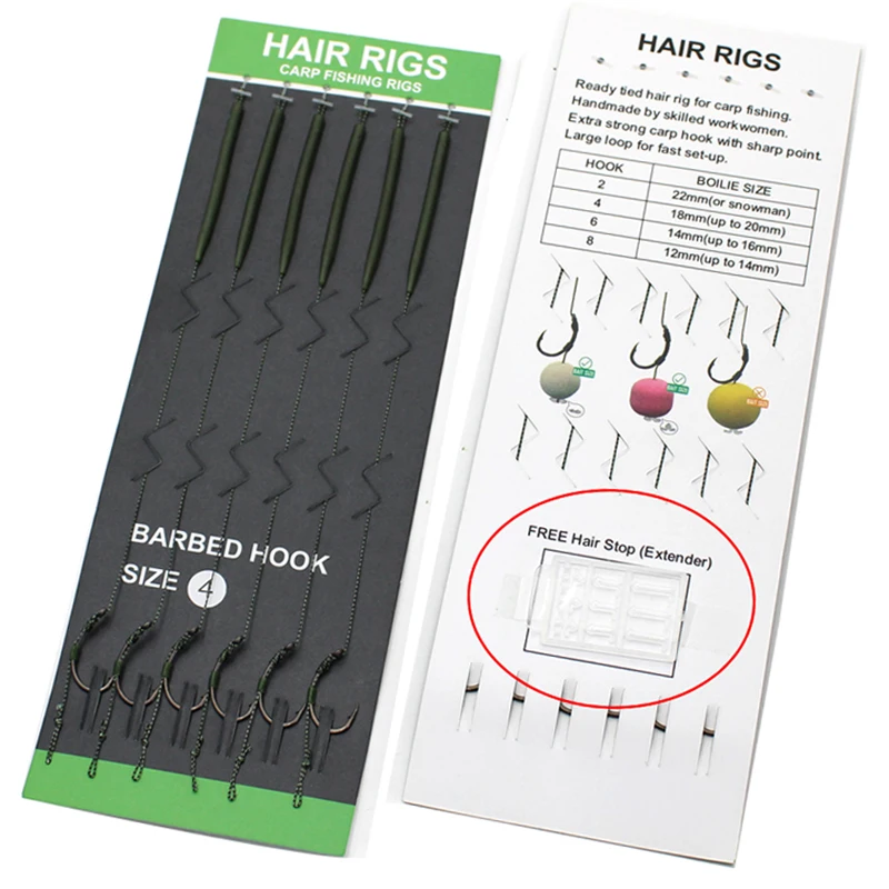 Aparejos de pesca de carpa de 6, anzuelo de pesca de carpa listo para usar y aguja de cebo, tamaño 2 #4 #6 #8, accesorios de equipo de aparejos de pesca
