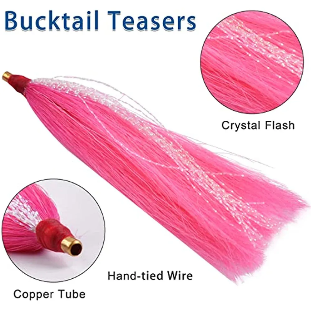 6 uds Bucktail Teasers línea Flash señuelo de pesca cebo Artificial pesca de agua salada Jig Flounder cebo equipo señuelo accesorios de pesca