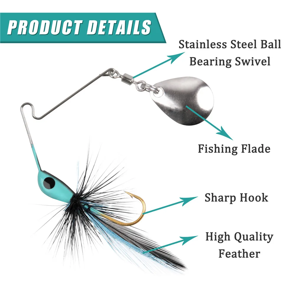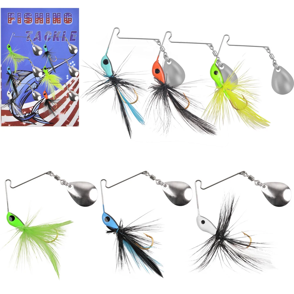 6PCS Spinner baits for bass fishing Kit with Colorado blades Spinnerbait Jig heads Teaser bait for Salmon Trout crappie fishing