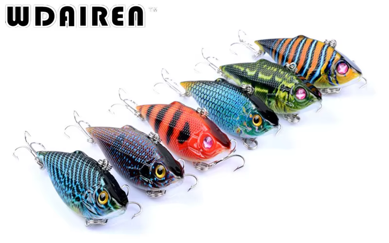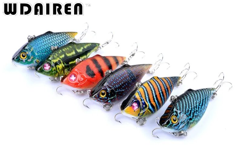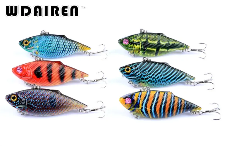 6 uds cebos Vib juego de Señuelos de Pesca con mosca mezclados cebos duros artificiales Wobbler realista aparejos de Pesca de carpa Pesca al por mayor
