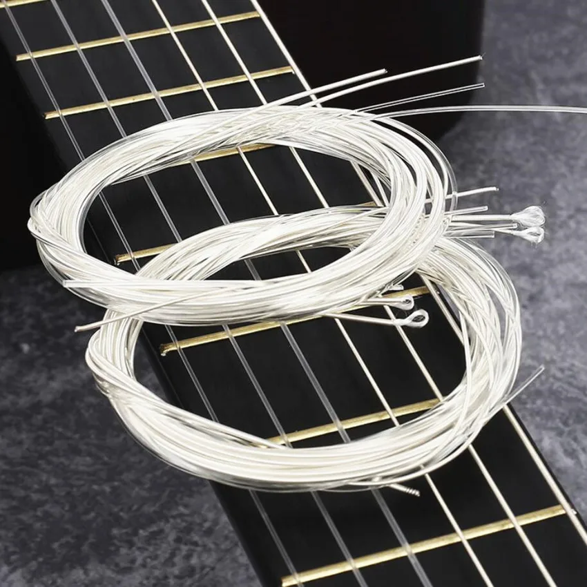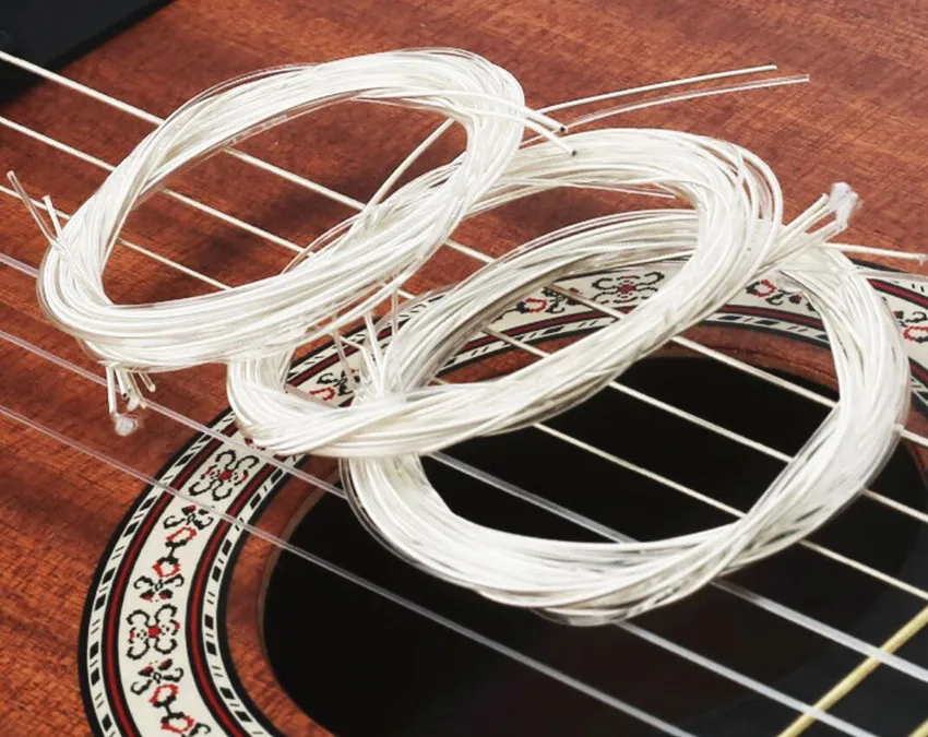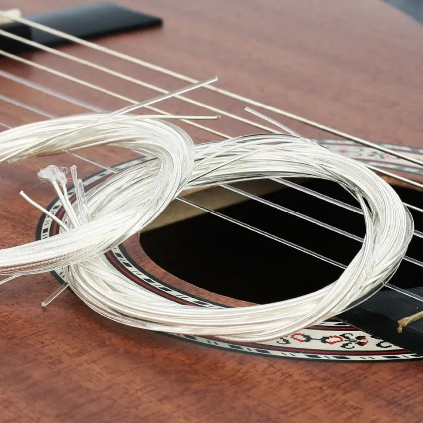 6 uds cuerdas de Metal de nailon clásico púas de guitarra de cuerda plateadas 1-6 alambre de guitarra usado accesorios de guitarra acústica clásica