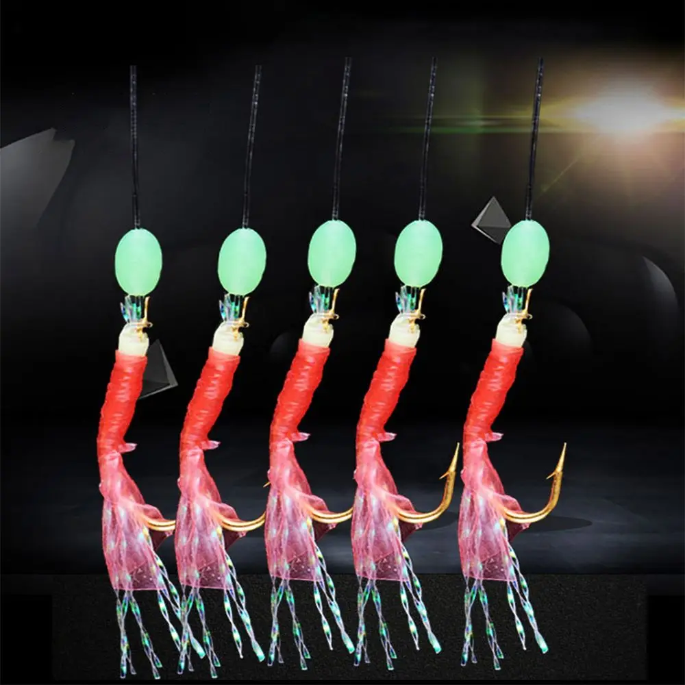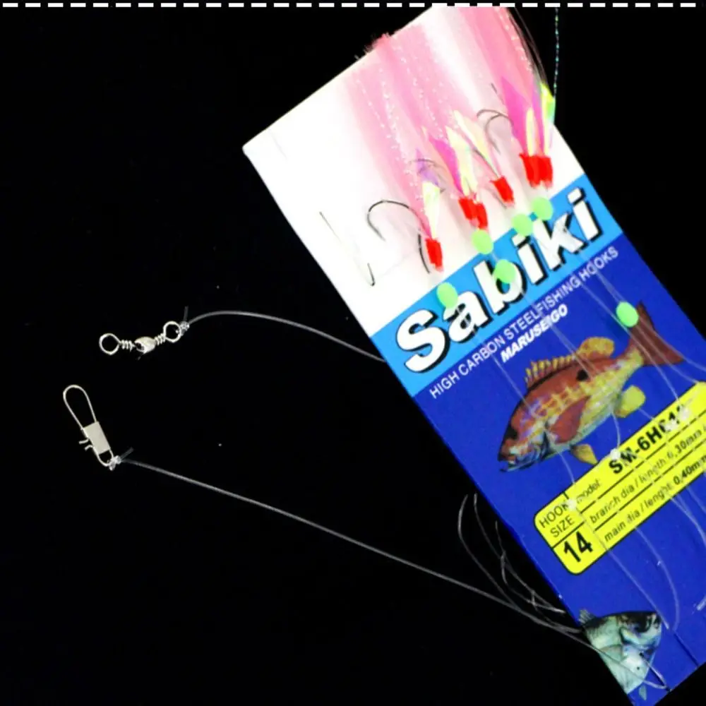 Fishing hook type: string hook Color: as the picture show Barb: yes Applicable time: day and night Applicable scene: fishing, rock fishing, sea fishing and freshwater fishing Features: 1. Luminous Design: The Luminous Bean Sabiki String Hook Rig features a luminous design that glows in the dark. This makes it highly visible underwater, attracting fish even in low-light conditions. It increases your chances of a successful catch during nighttime or deep-sea fishing. 2. Artificial Rubber Lure Bait: The rig comes with artificial rubber lure baits attached to each hook. These lures mimic the appearance and movement of real bait, effectively attracting a wide range of fish species. The realistic design enhances your fishing experience and increases the likelihood of bites. 3. 9 Sizes of Fishing Hooks: With 9 different sizes of fishing hooks, this rig offers versatility to meet various fishing needs. Whether you're targeting small freshwater fish or larger sea fish, you can select the appropriate hook size for your desired catch. 4. Suitable for Sea and Freshwater Fishing: The Luminous Bean Sabiki String Hook Rig is suitable for both sea and freshwater fishing. It can be used in rivers, lakes, ponds, and oceans, making it a versatile choice for anglers who enjoy different fishing environments. 5. Durable and Reliable: Crafted with high-quality materials, this rig is designed to be durable and reliable. It can withstand the rigors of fishing, including strong pulls and rough conditions. The sturdy construction ensures that the hooks stay securely attached to the rig, minimizing the risk of losing your catch. Package included: 1 bag of fish hooks(6pcs) Notice: 1. Due to the difference in display, shooting light and environment there will be some color difference between the actual color and the picture color, which is normal. 2. Due to manual measurement, the size of the product may have 1-3mm difference. 3. lf you have any questions, please contact us first and we will solve it for you.