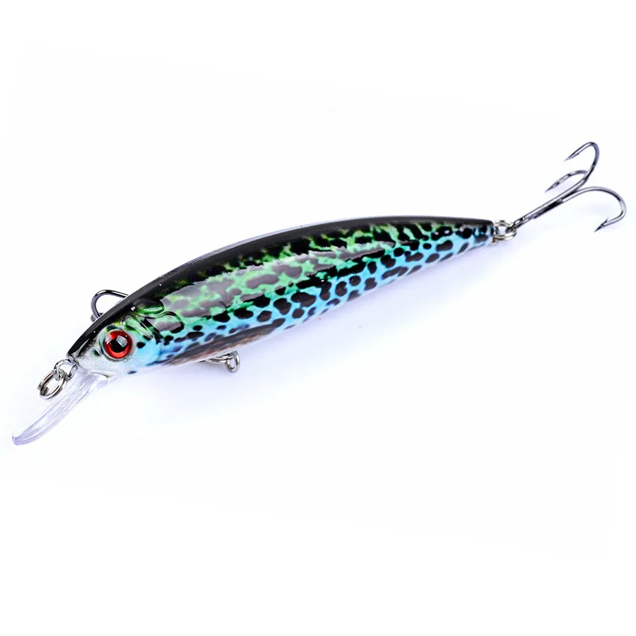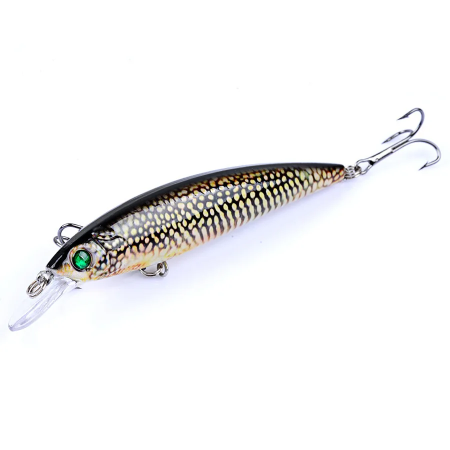 Característica: Tipo: cebo de pesca minnow Peso: 13,4 g Longitud: 11 cm Ganchos:4# gancho Profundidad de natación: 0,6 m -1,8 m Anzuelos de calidad: 2x anzuelos triples fuertes Anillo: Anillo plano fuerte Peixe objetivo: chub pálido, lubina, picos, carpa de cheque amarilla, perca china, culter de boca superior