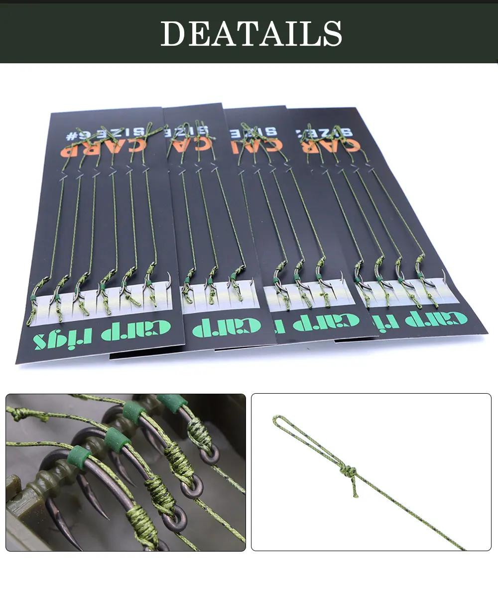 1.Los aparejos para el cabello con anzuelos de carpa preatados brindan la opción de reducir sustancialmente los tiempos de instalación del aparejo, dejando más tiempo para la pesca real.