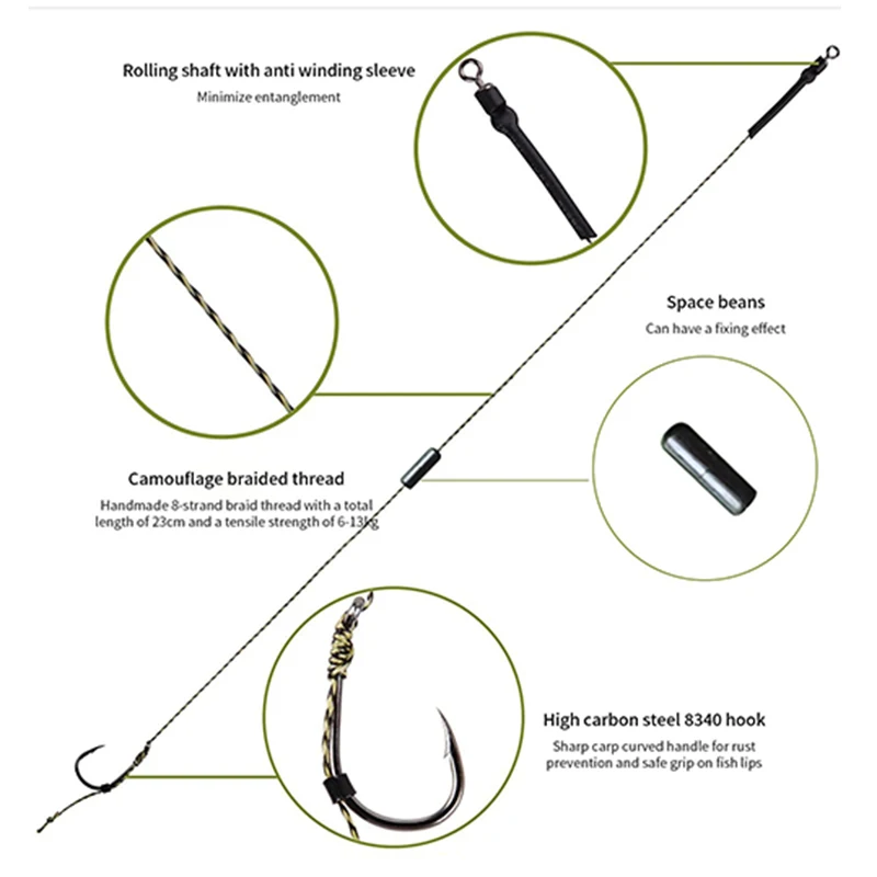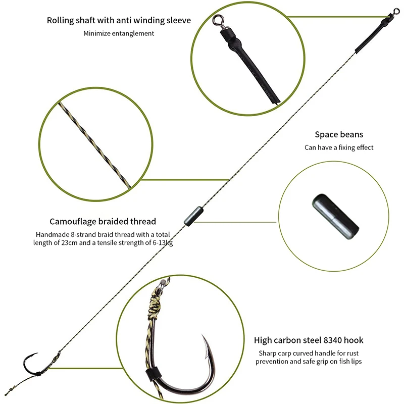 - Fabricado con hilo de pescar trenzado de 20 cm.