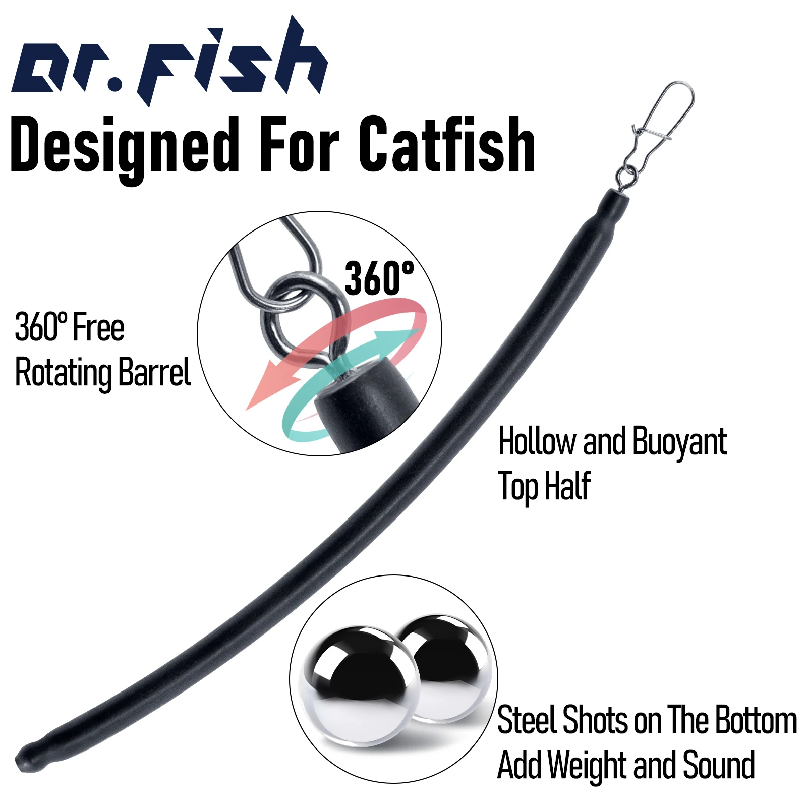 Giratorio: cada peso de arrastre está rematado con un cilindro giratorio que gira libremente 360° ¡Para un fácil montaje en aparejos!