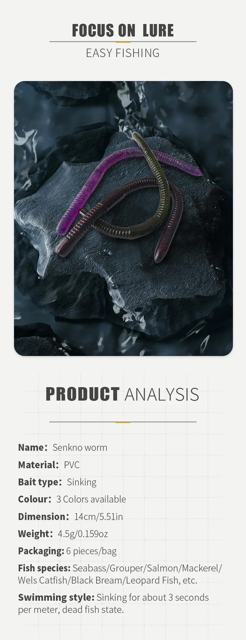 6 uds SENSEYE cebo suave truco gusano 4,5g 140mm Leurre Souple para todos los peces Iscas Señuelos de Pesca artificiales palo gusanos