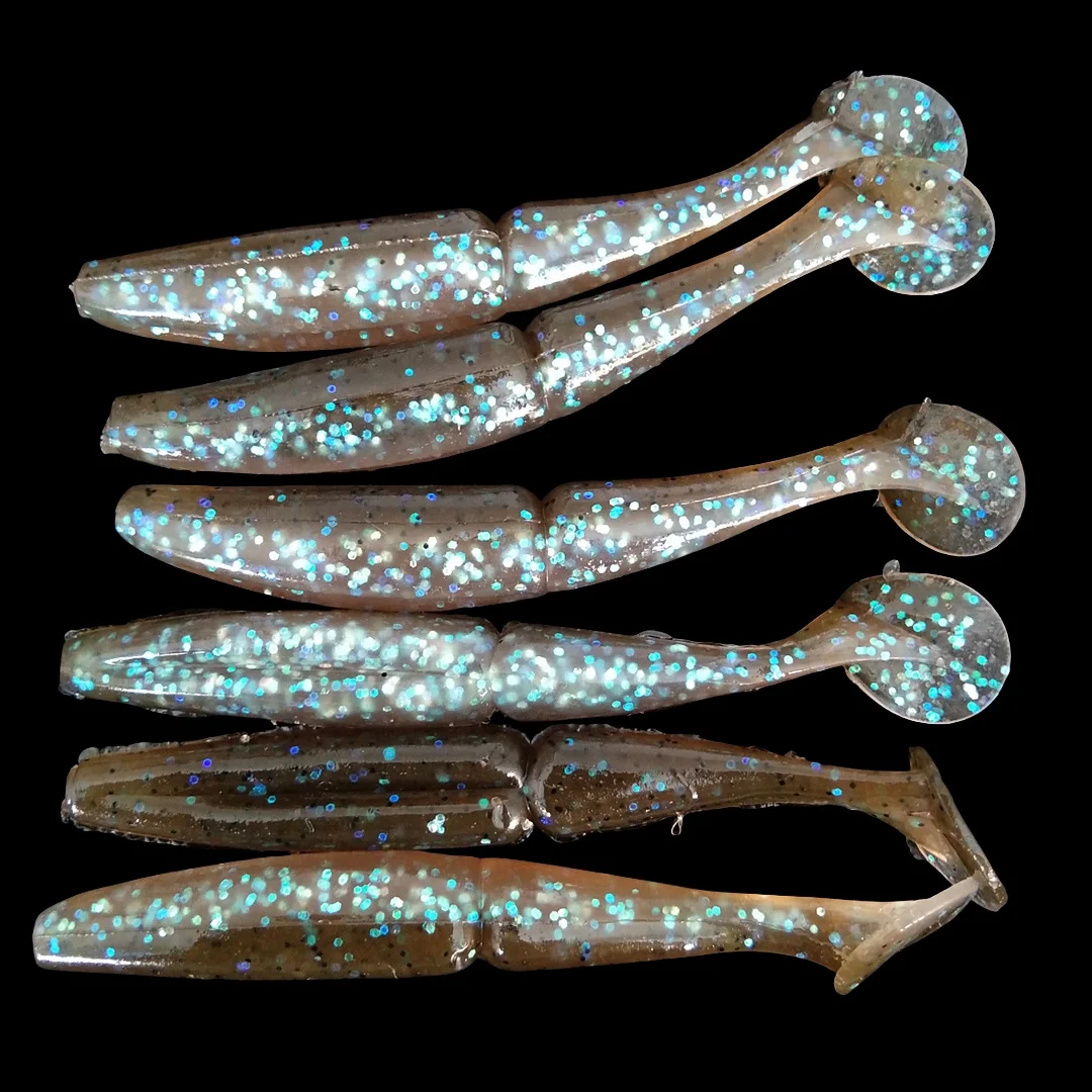 6 uds Swimbaits con cola de paleta gusano larva Señuelos de pesca lote para lubina cebos de plástico blando para agua de mar