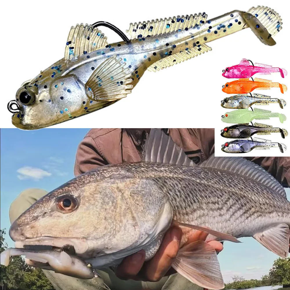 6 uds Wobblers de silicona cebo suave cola de paleta Swimbaits anzuelos señuelo de pesca para lubina trucha Lucio