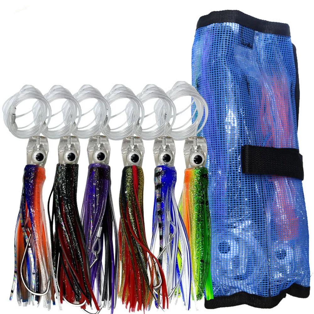 6 unids/bolsa falda de corrico señuelos de atún 6 pulgadas barco pesca señuelos de agua salada para Mahi Marlin Wahoo Billfish gran juego pesca