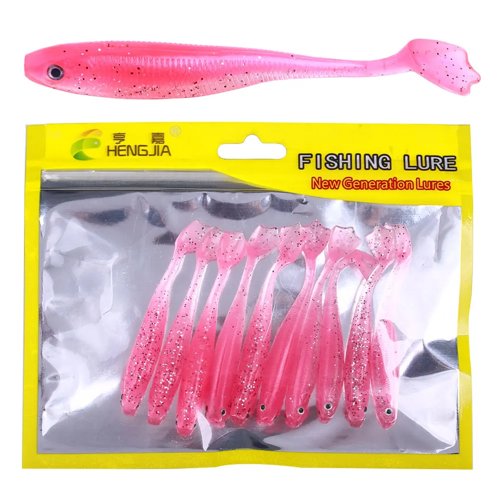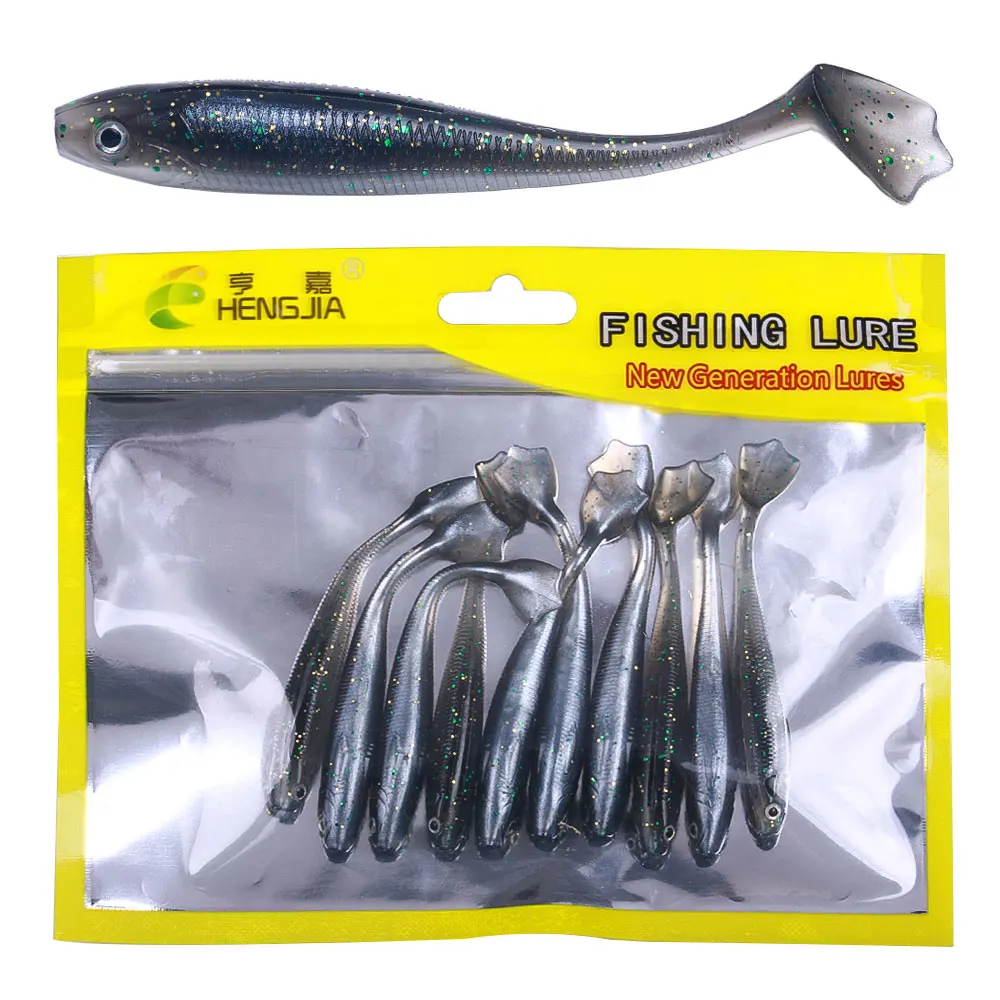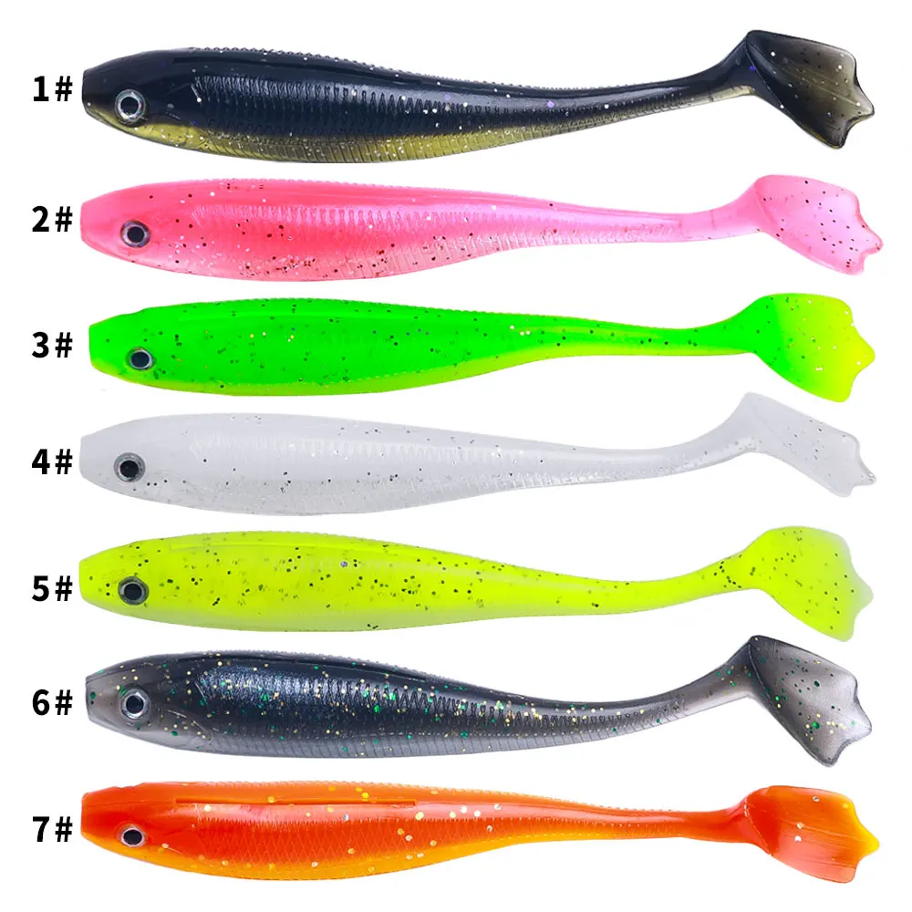 6 unids/bolsa Softbait con cola en T pez trucha y lubina señuelo de pesca cola de pata de pato cebo Artificial para pesca en agua dulce y salada