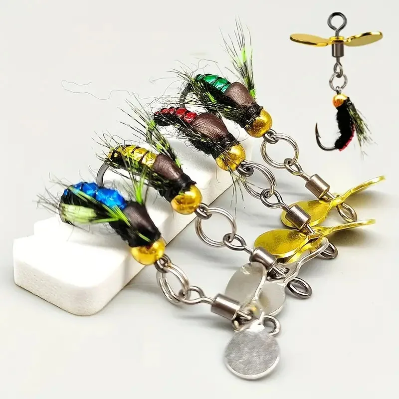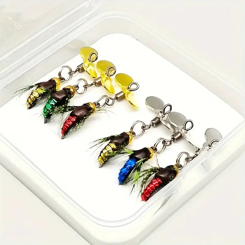 6 unids/caja cebo de pesca de insectos artificiales, cabeza de cuentas de latón de hundimiento rápido Scud mosca gusano trucha señuelo de pesca