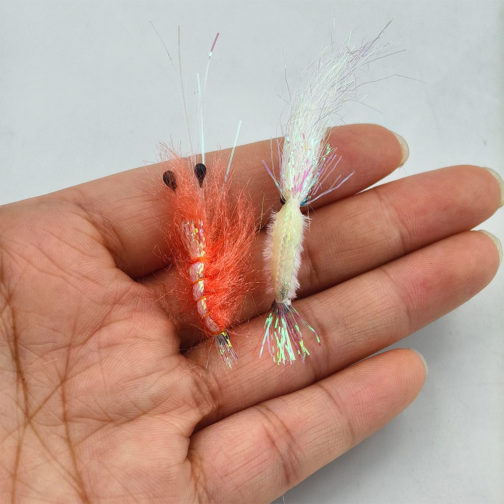 6 unids/caja Flash respaldo naranja camarón mosca/perla blanco ala de hielo luminosa camarón agua salada pesca mosca trucha lubina señuelo