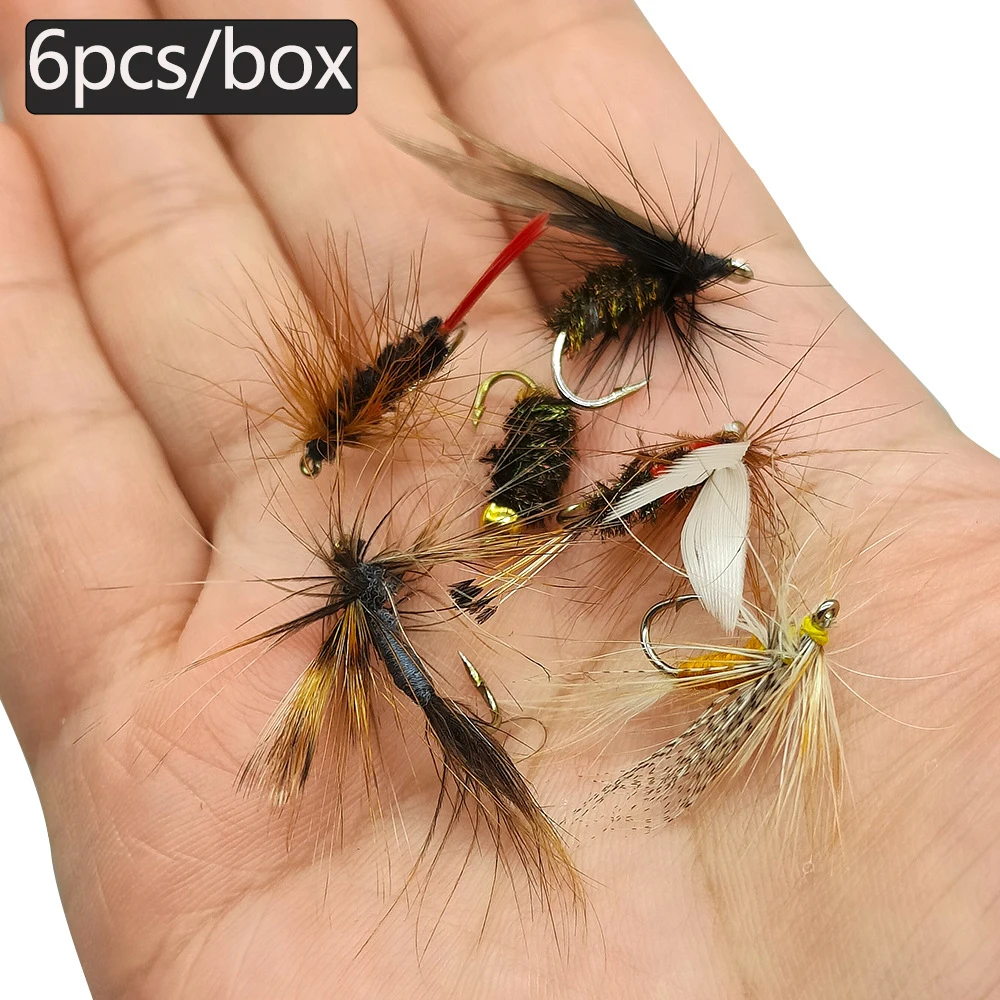 6 uds * señuelos de pesca con moscas húmedas con caja